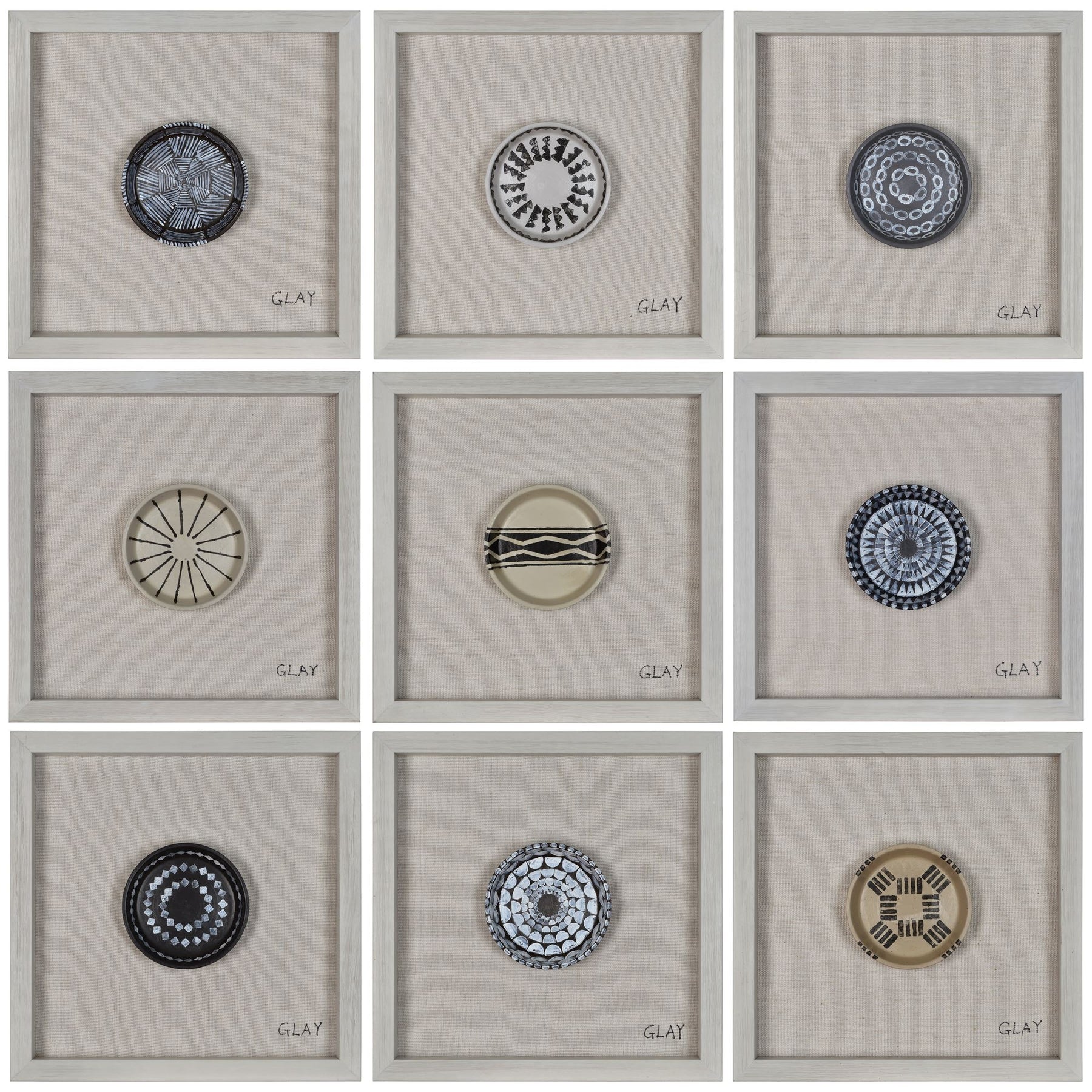 Regular price $879.00Set Of Nine - Hand Painted - Clay Plates Linen - Wood Frame