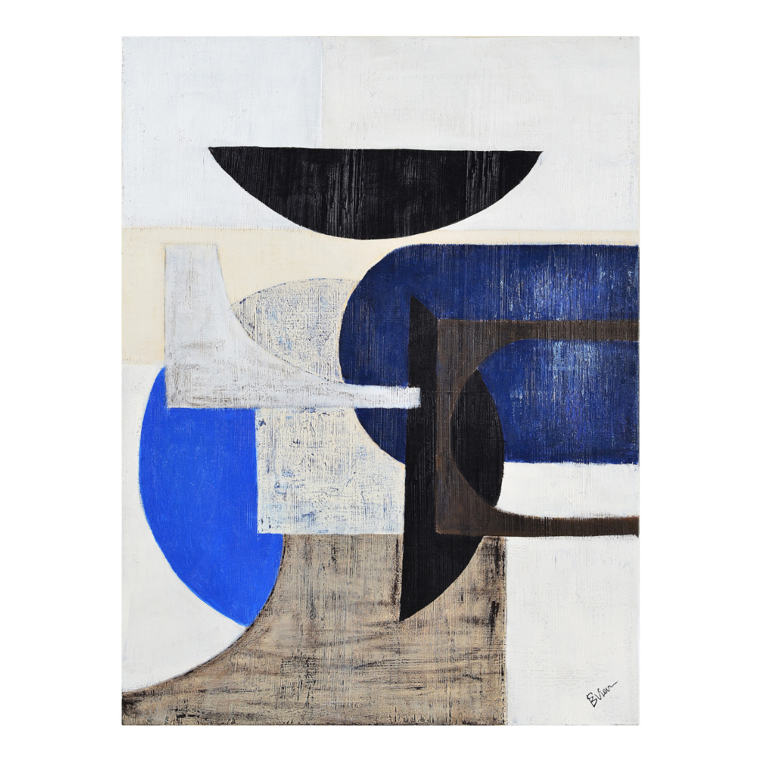 Regular price $419.00Hanging vertically or horizontally, an entirely new tale is told from this cotton canvas. A dry brush texture gives the hand-painted piece an urban quality reminiscent of street art. While the majority of the tones are neutral, a pop of pearl blue brings vibrancy to the palette.