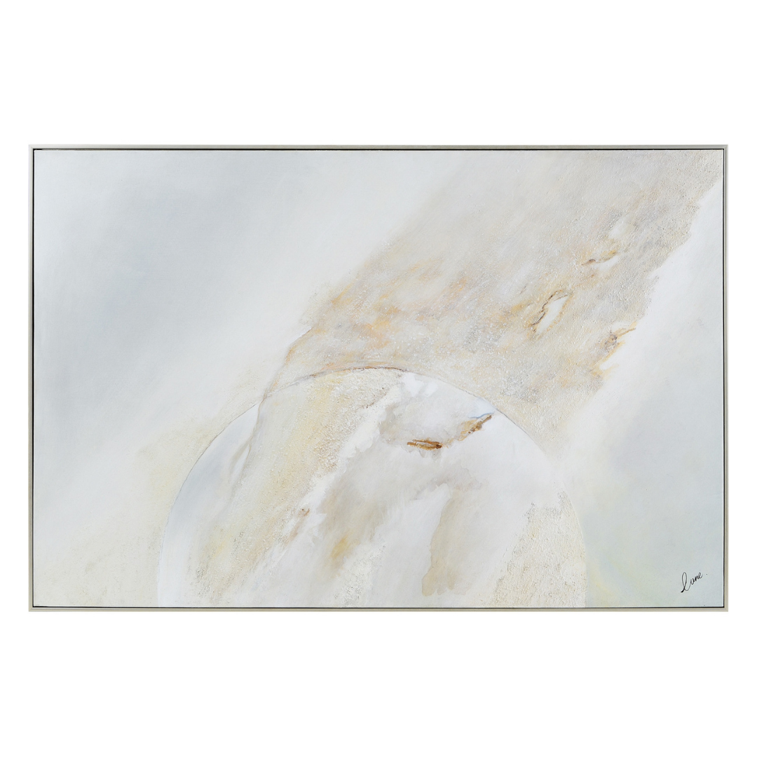Regular price $889.00Evocative of marble and the moon, one can decide what this work of art depicts while styling within the interior. The soothing, heavy textured hand-painted print is optimal for a bedroom space where creating a calm atmosphere is key. A thin champagne/silver frame corresponds idyllically with the gray palette of the piece.