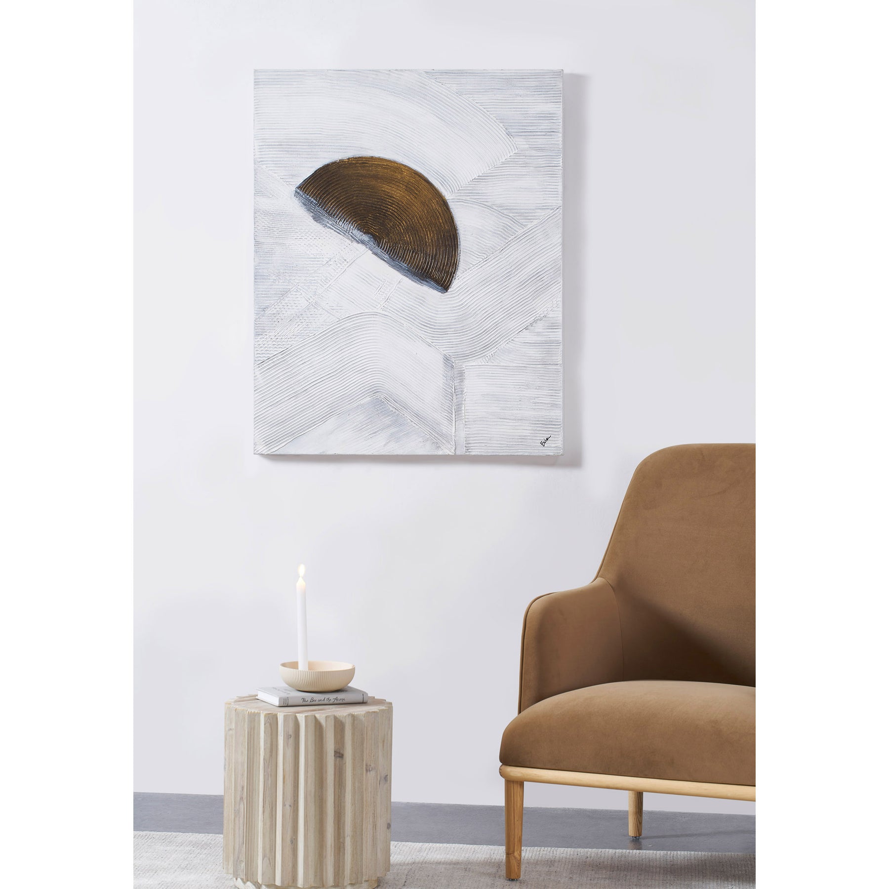 Regular price $449.00Creative and minimalist design intertwine in this hand-painted piece of art, allowing it to flow within a contemporary or classic interior. Featuring heavy texture and gold accent details, it presents two different stories when seen up close or at a distance. The solid off-white edge is all it needs for a crisp finish; no frame necessary.