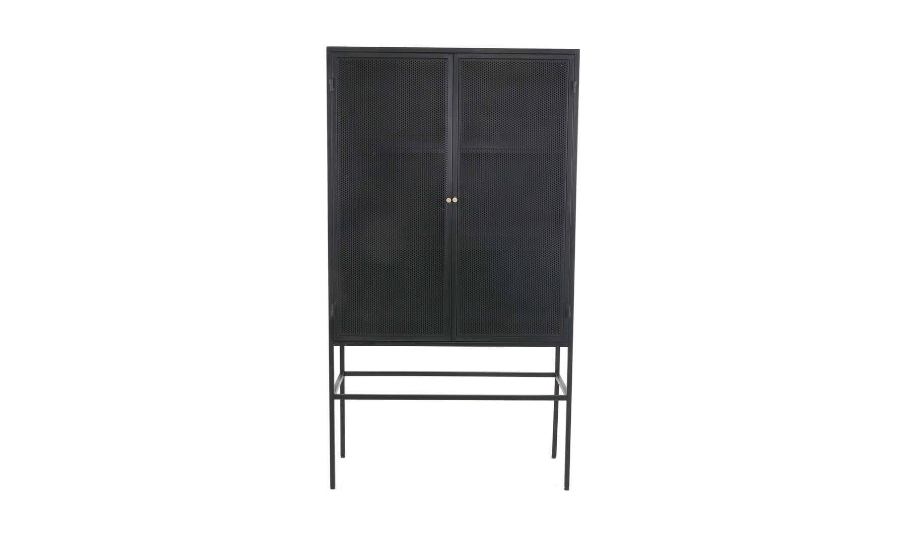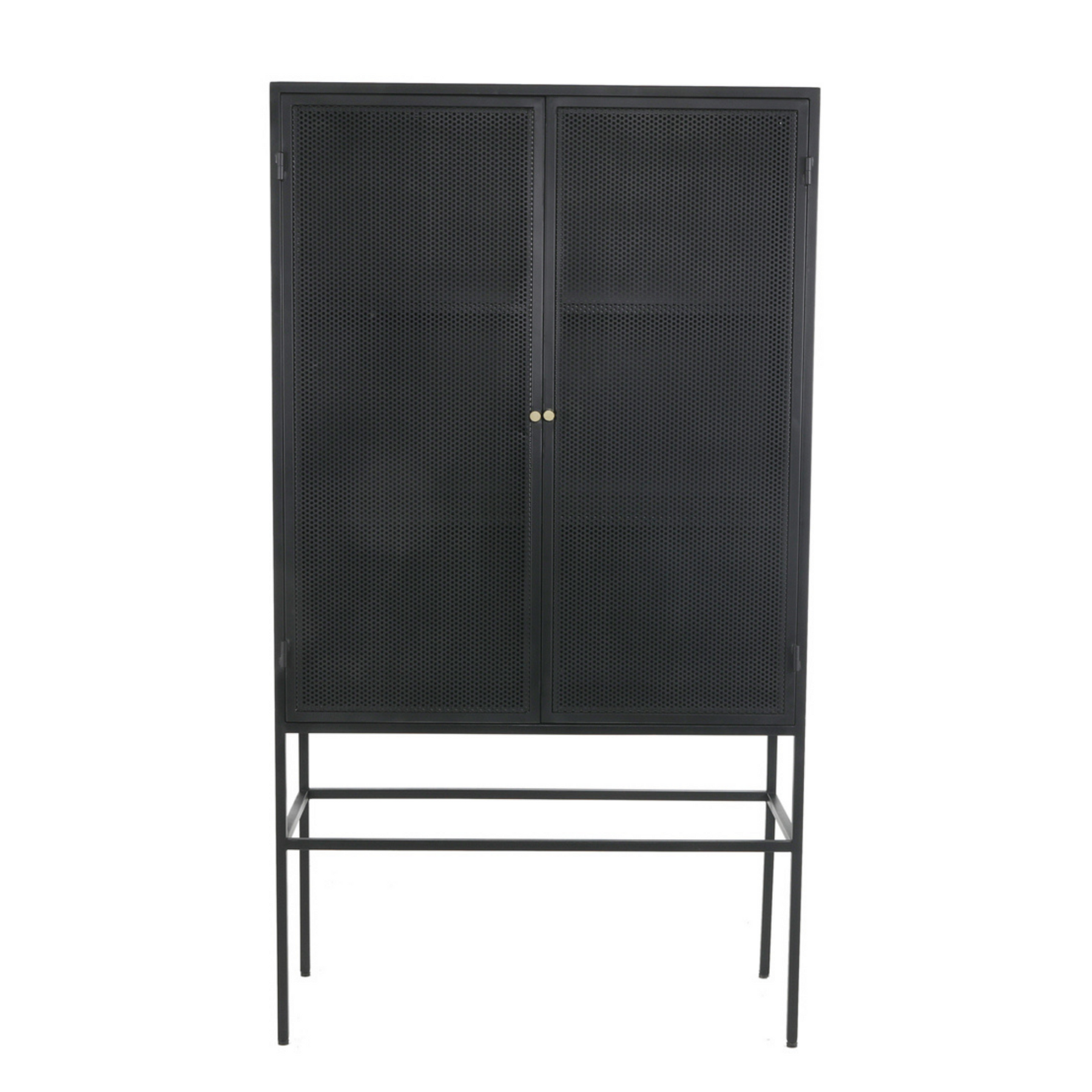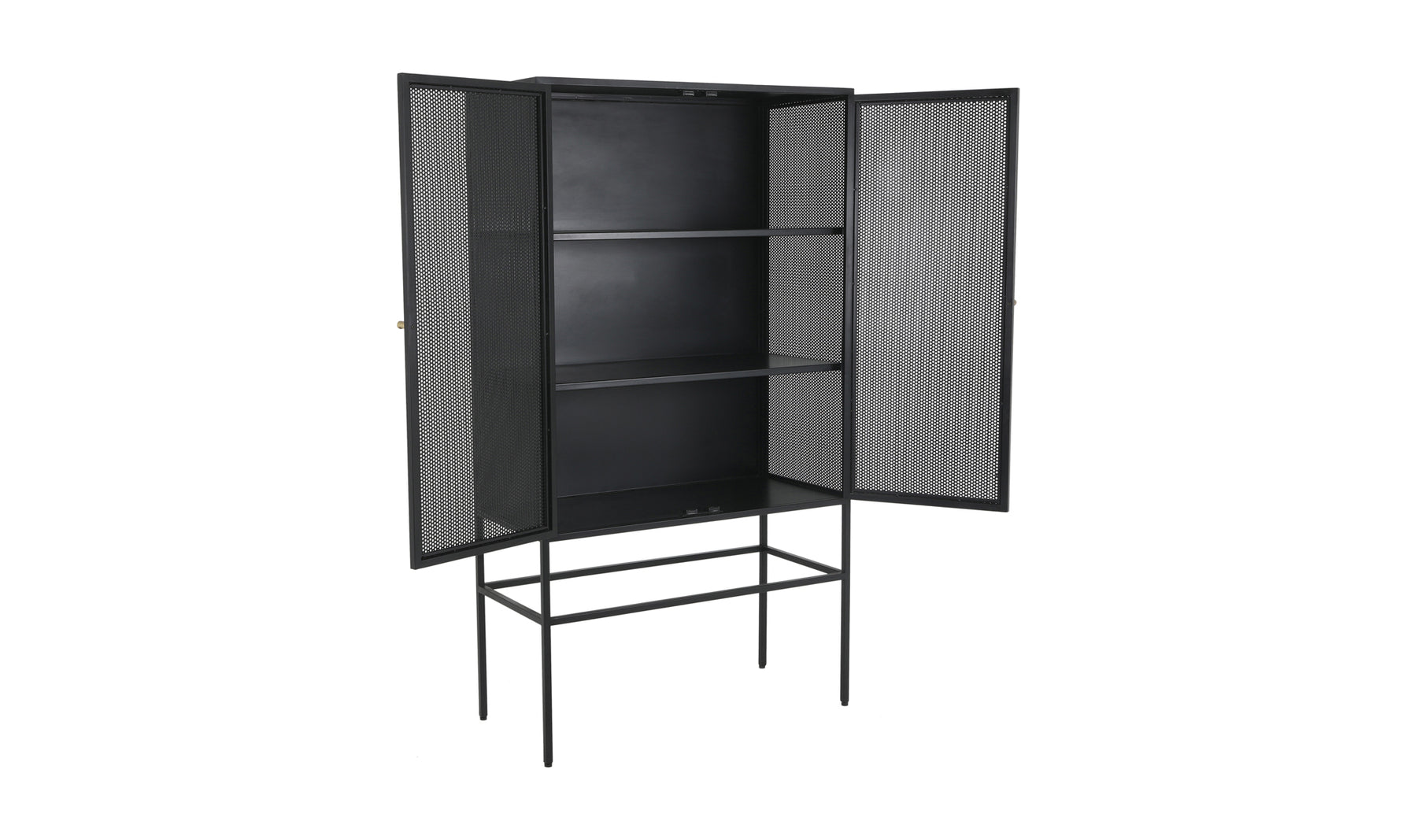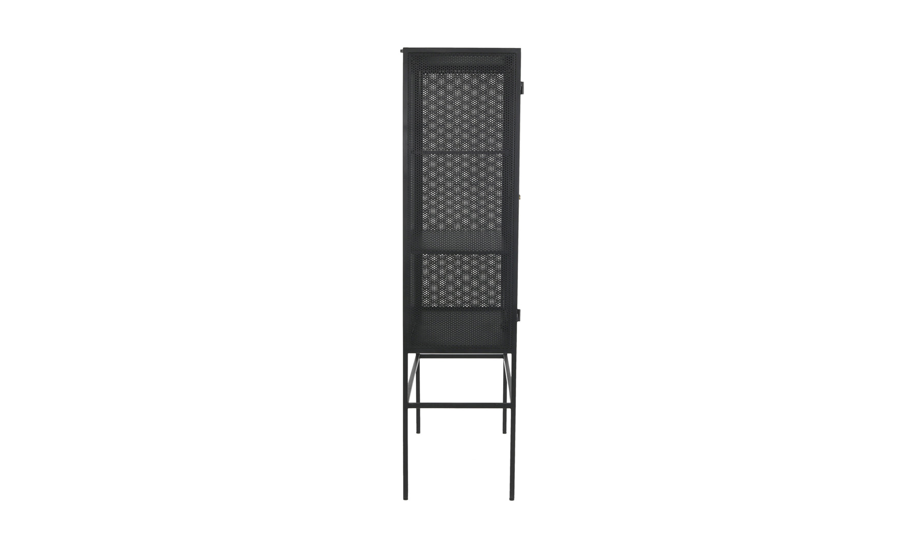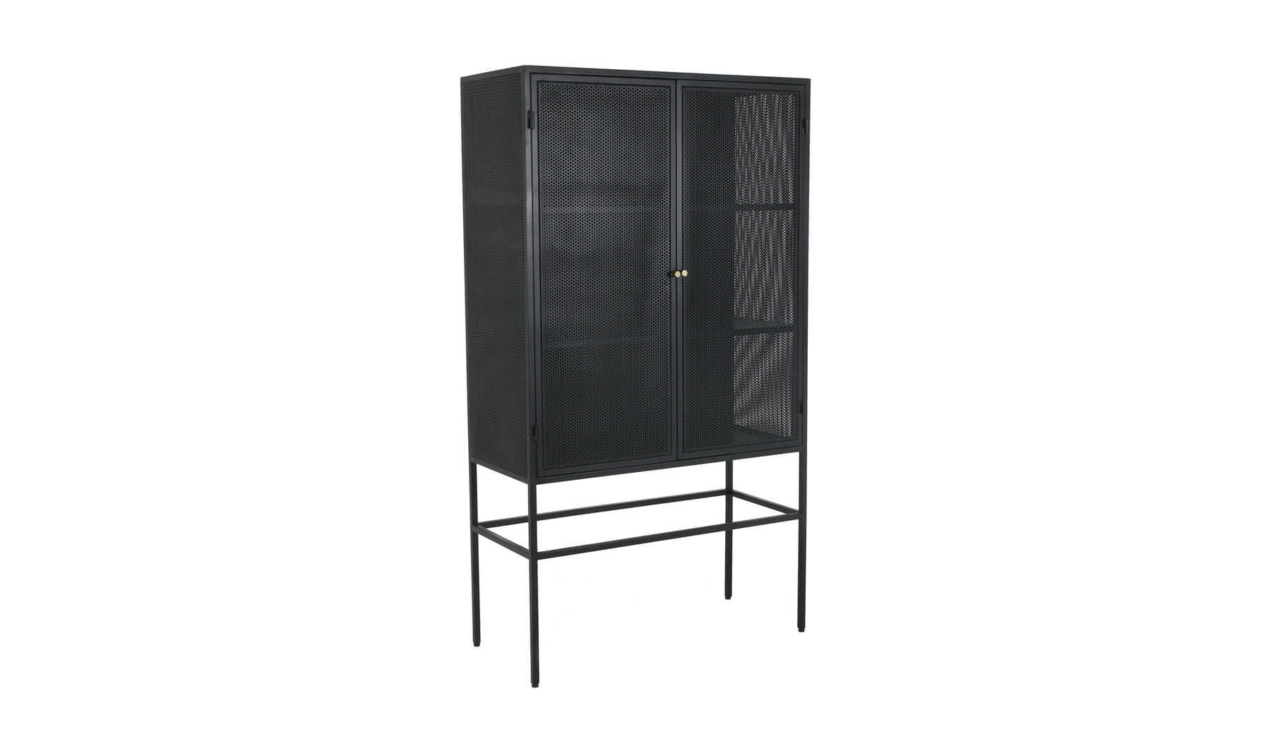 Made from metal, the INDIE tall cabinet is a full-size display cabinet featuring two large glass-lined doors. Behind the glass doors is ample storage space and four shelves to display all your favorite décor items. For added convenience, the doors on the INDIE are equipped with pivoting door handles and a locking mechanism to ensure the doors stay closed. The INDIE is a favorite choice for spaces based on the Industrial design style.