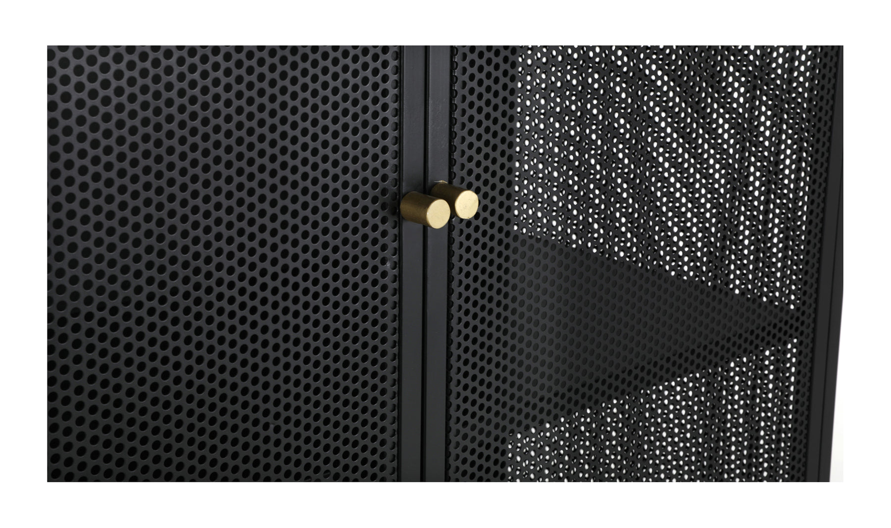 A stunning cabinet, the INDIE features metal doors with glass inserts. Each door has a metallic cross-hatch design on it that adds to the industrial look of the piece. A fixed metal shelf on the INDIE ensures enough storage space for all your décor, dinnerware or linens, making it not just a visually enticing addition to your space but also a functional one. The see-through style shelf makes the INDIE a great choice if you’re looking to display some of your favorite crockery or décor.