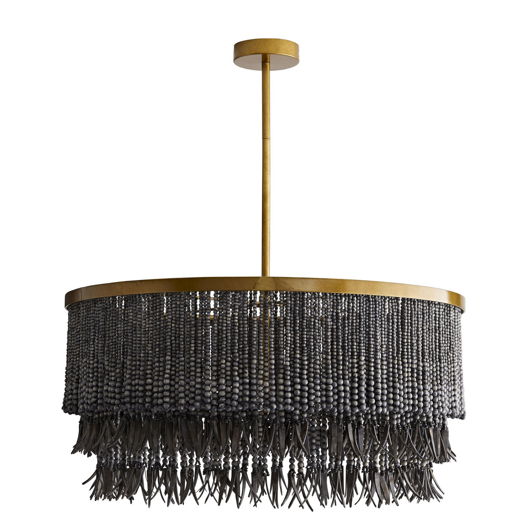 Regular price $1,079.00The WIRRA shade is expertly crafted from whicker that is woven into an intricate and delicate formation. The chandelier features sturdy metal hardware on the rod, ceiling cap, and shade cap, which adds a pop of contrast to the soft wicker shade. The WIRRA's shade is finished in a natural mix of brown colors, while the hardware provides tasteful contrast with its brushed gold and shiny finish.
