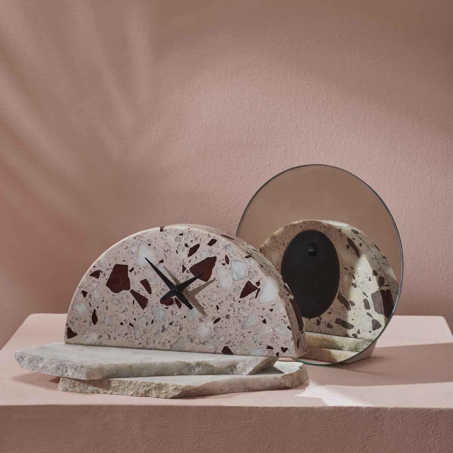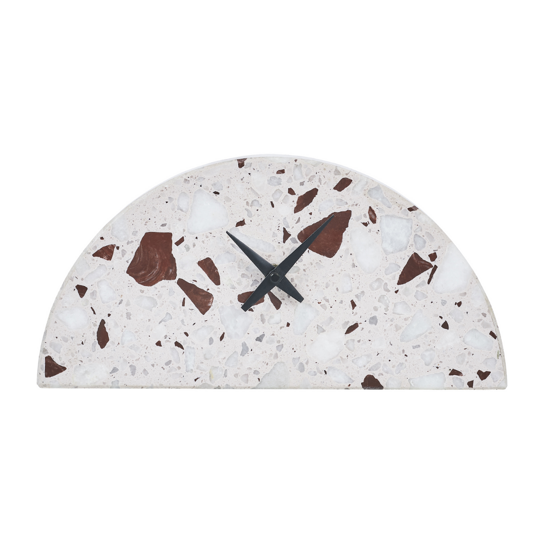 Regular price $159.00A juxtaposition of utility and artistic design, this half-circle clock effortlessly becomes a focal piece in the contemporary interior. Composed of engineered marble with iron details, it has a luxe appeal that shines from every side. Featuring a blend of gray, black and natural hues.