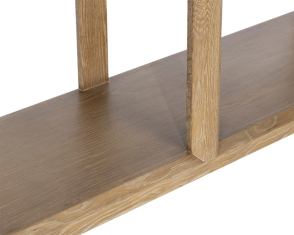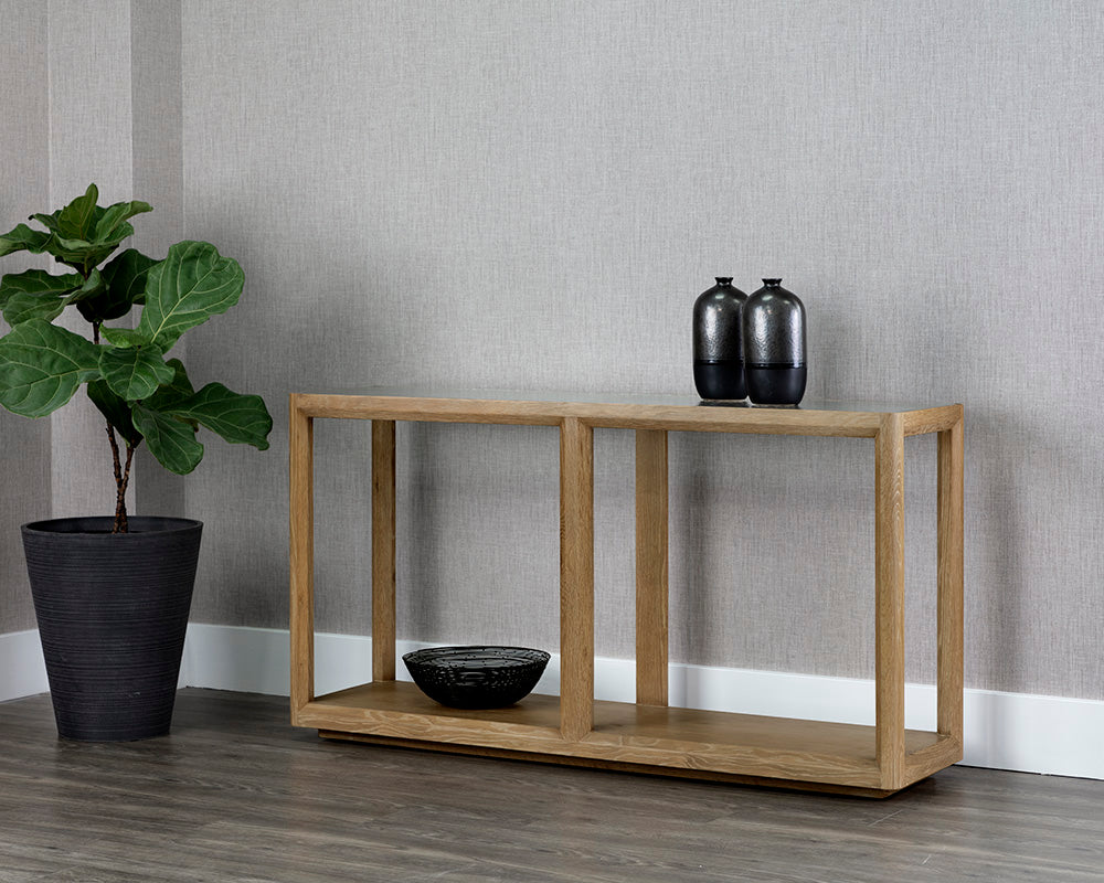 With a clean and modern composition, this console table will add minimalist style into any space. Crafted from a solid oak wood frame with a smoke grey oak veneer. As wood is an organic, porous material, these pieces will contain natural variation of texture and may also exhibit fine indentations and cracks. Wood pieces will also display a disparity of colour and grain, and visible knots and burls that add to the character of each piece.