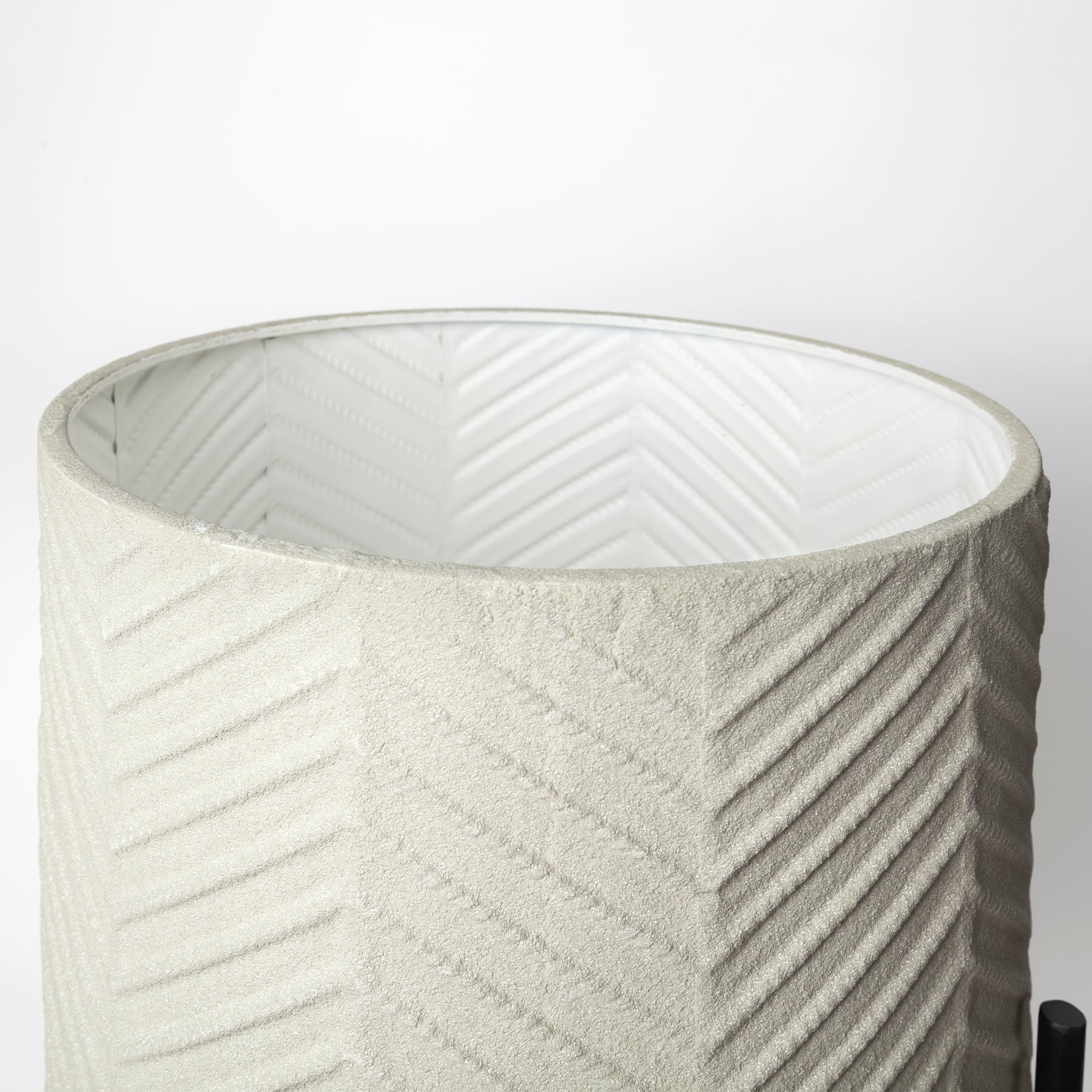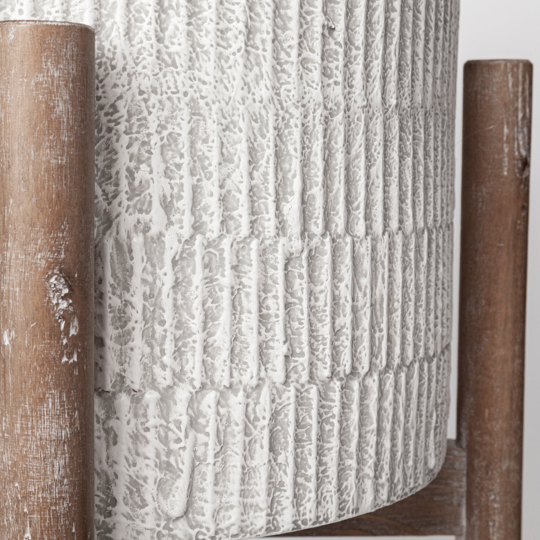 Materials: eggshell-toned metal cylinders with a wooden stand