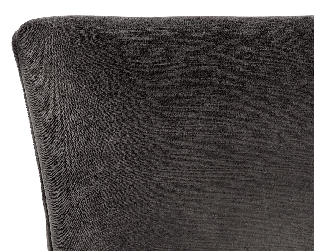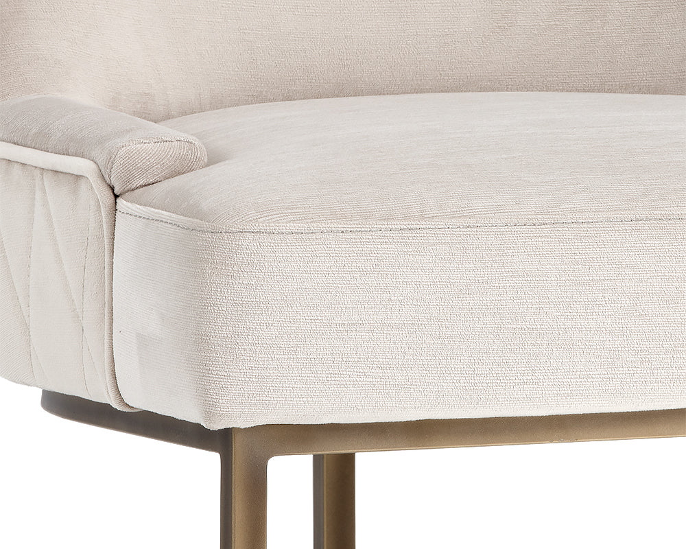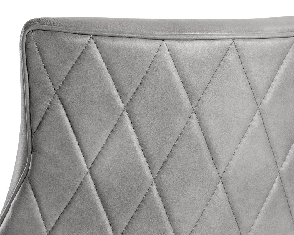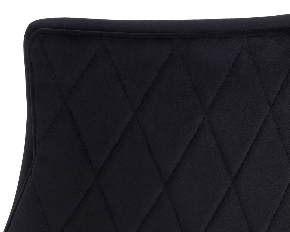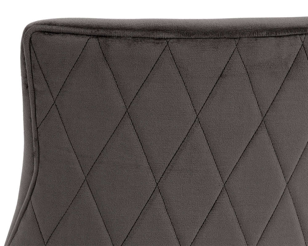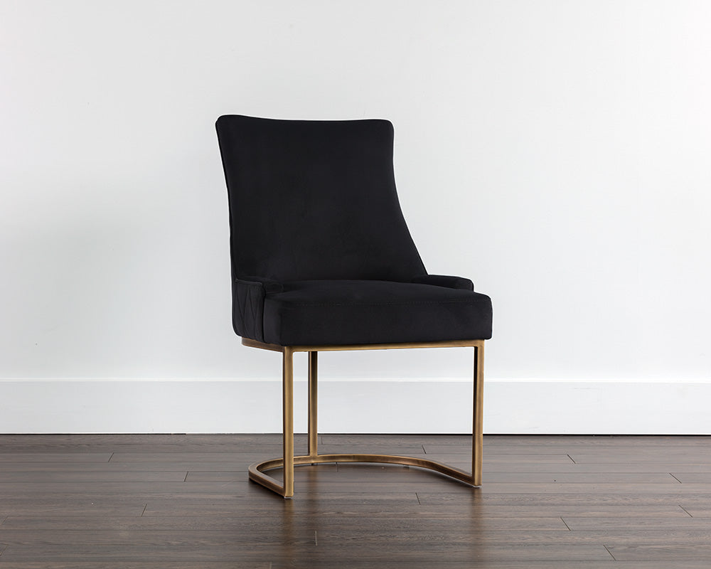 The FIORELLA dining chair offers transitional elegance. Features a beautifully sculpted seat in vegan leather and fabric options, with a rustic bronze cantilever frame. A diamond stitched pattern on the exterior seatback adds a touch of beauty to complete the look.