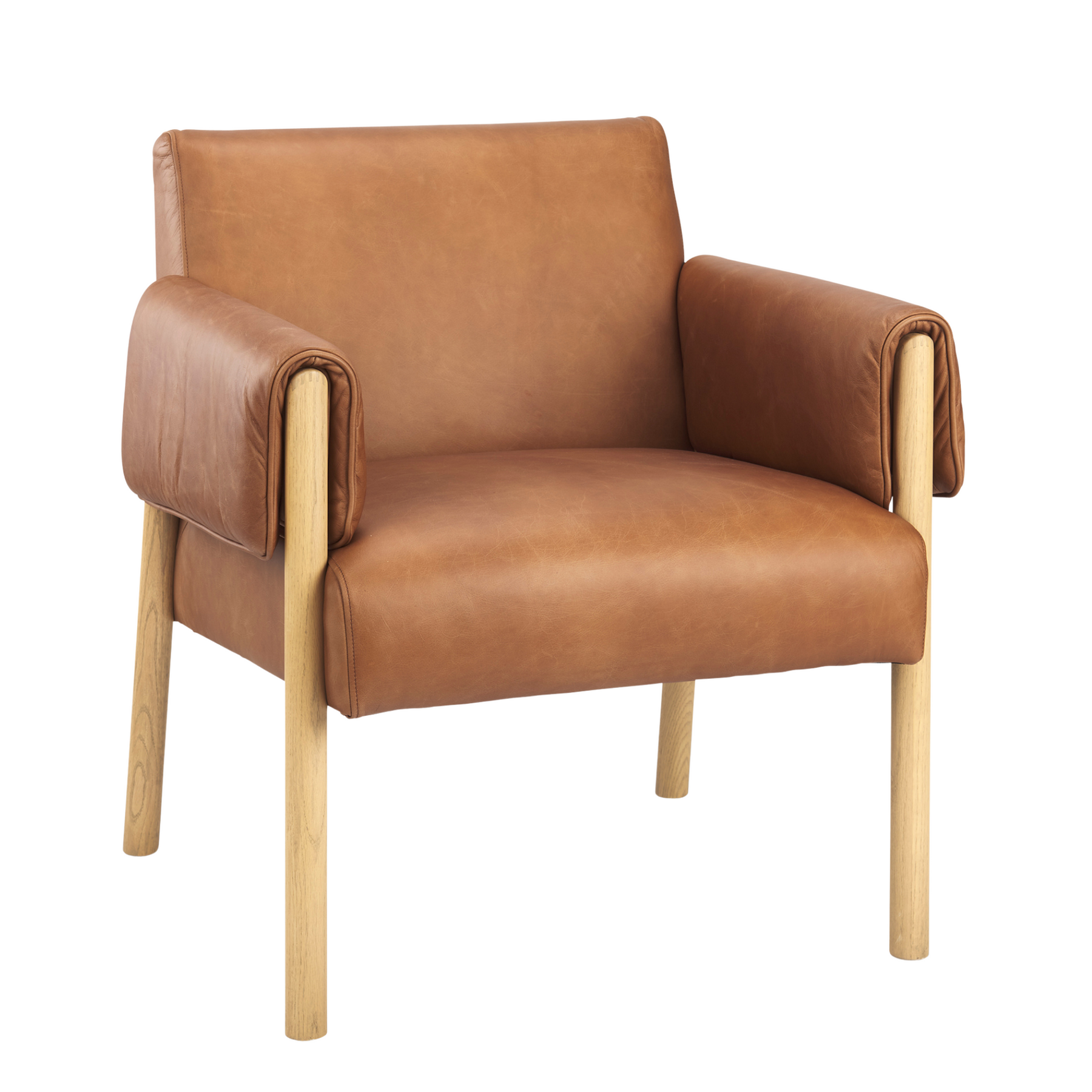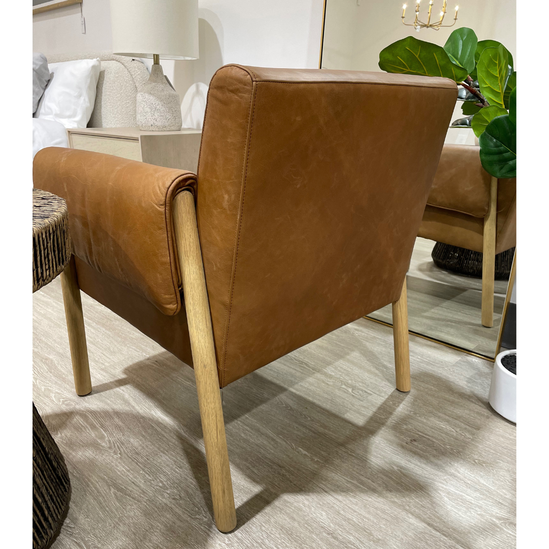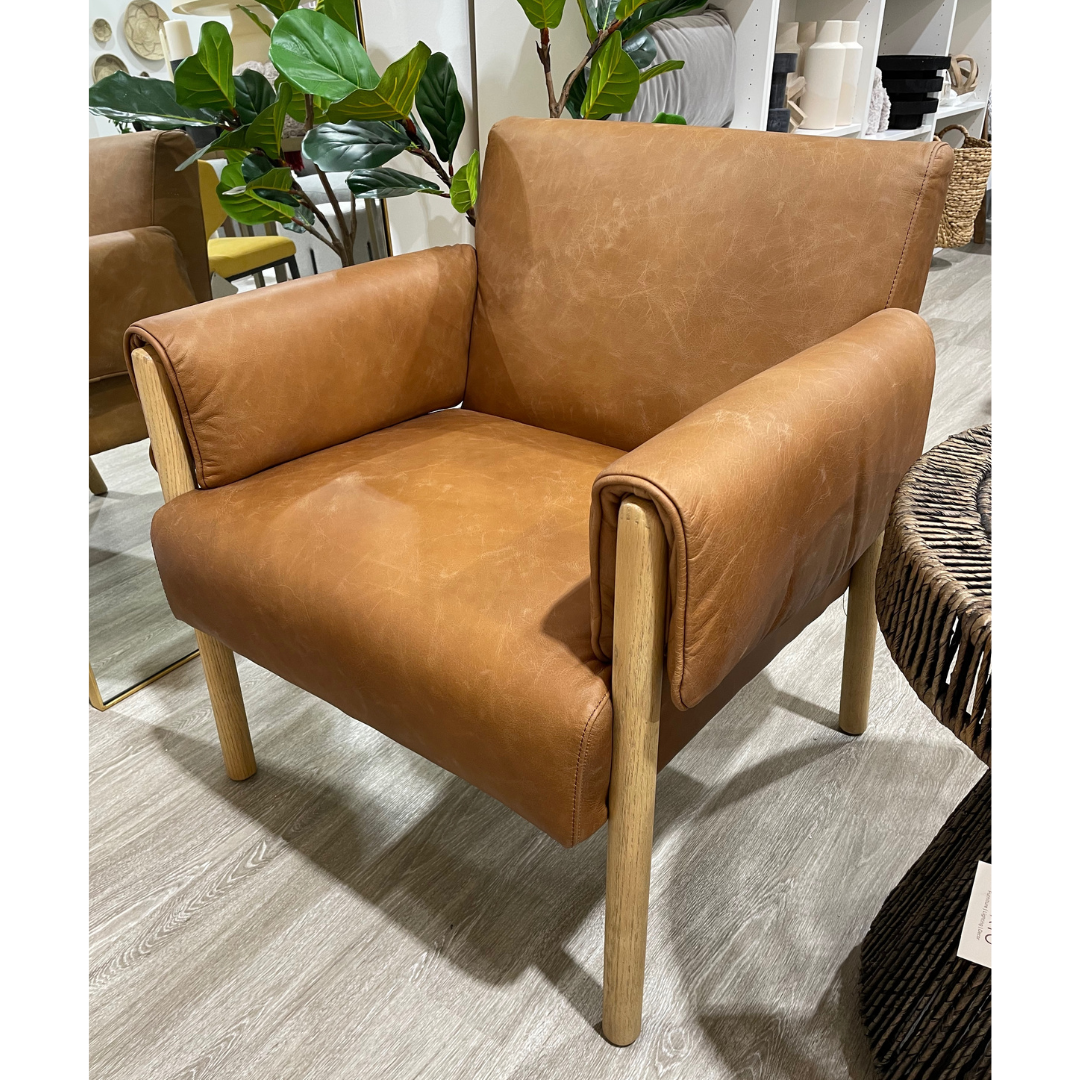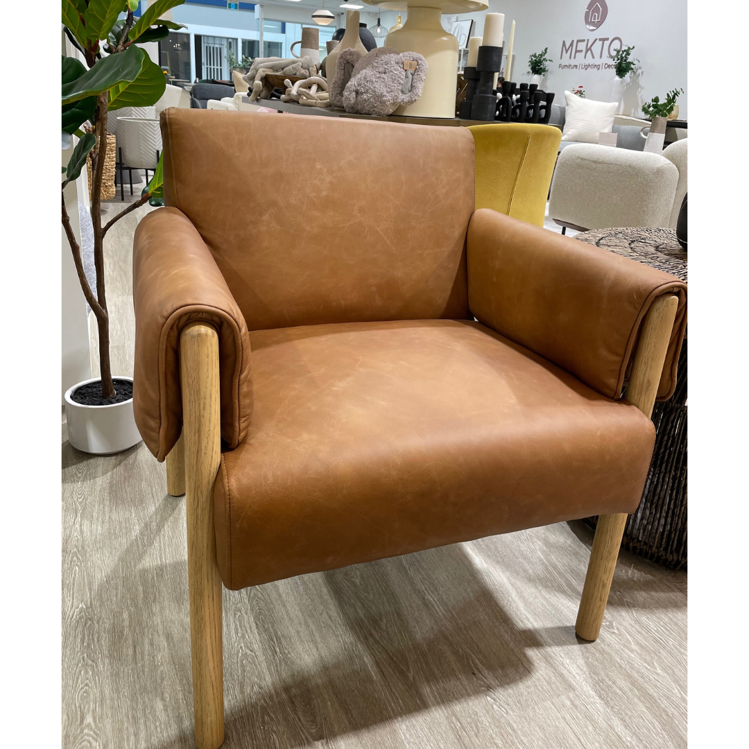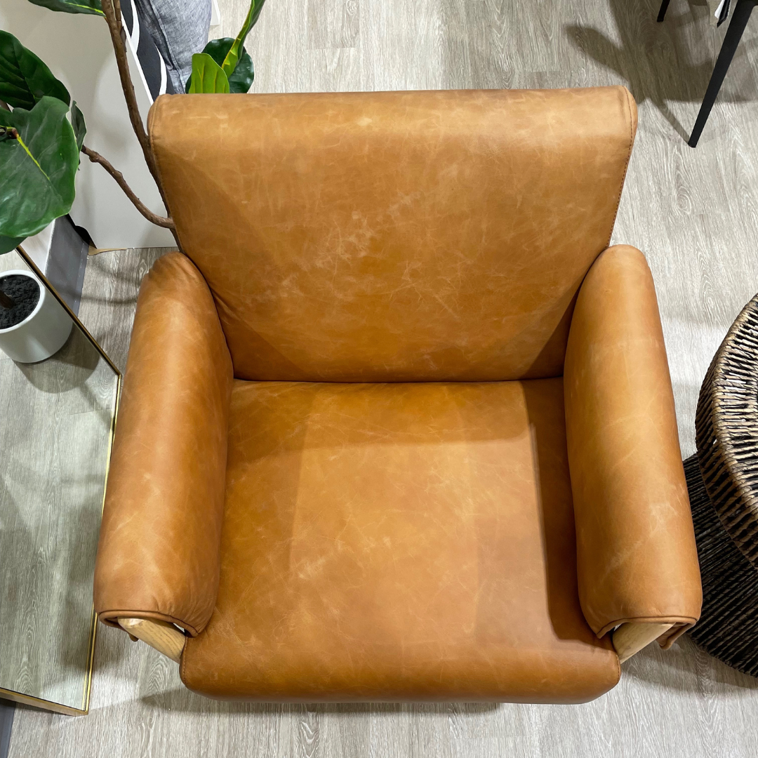 Solid, plush, and inviting. The ANTERO leather chair definitely makes a statement. This quality piece will take pride of place in your living room or office. Its cognac-colored, genuine leather drapes sumptuously over the padded armrests, adding an element of comfort and style; while the solid Beech wood legs stand proud and sturdy, ensuring ultimate durability.