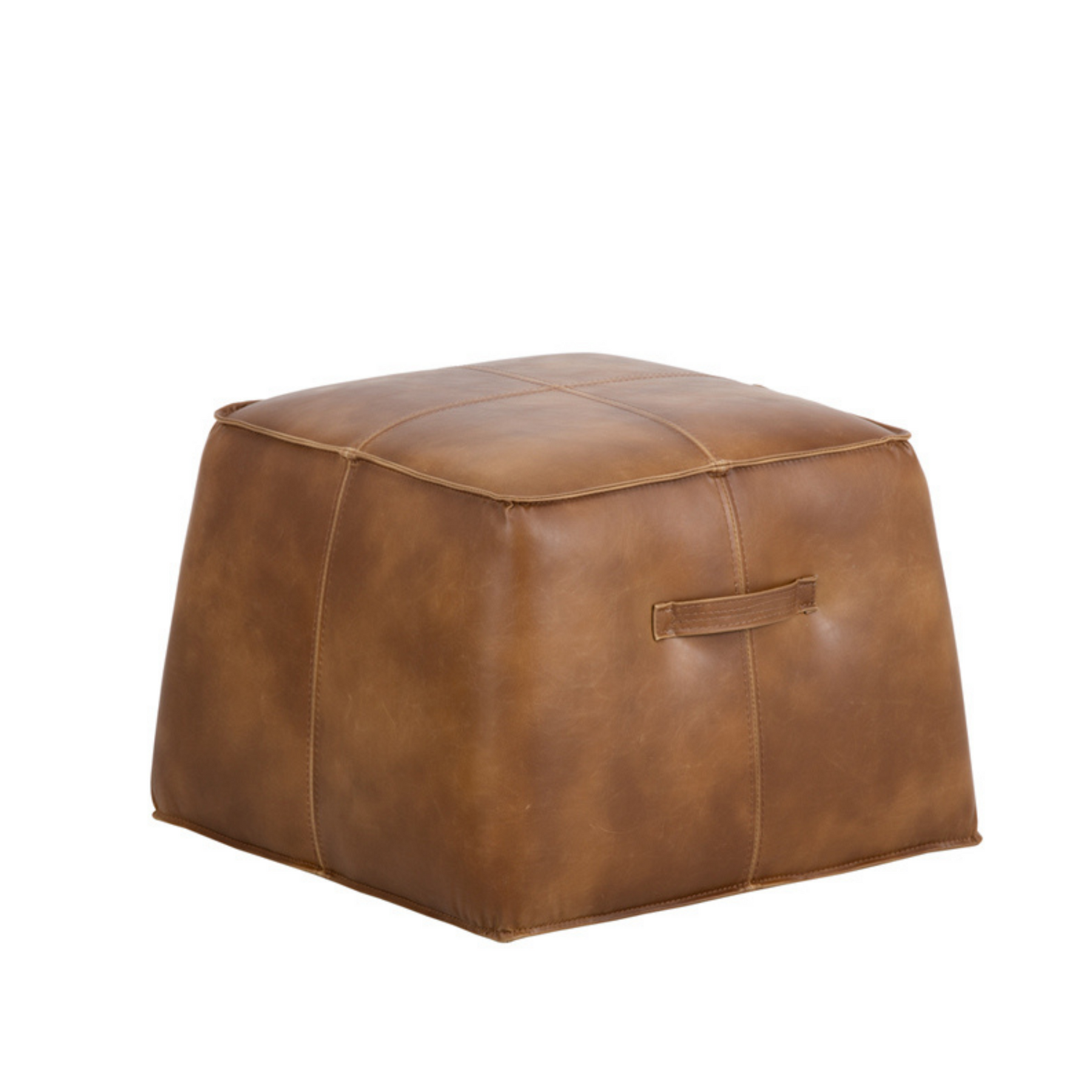 The handsome cubed ASTOR ottoman is stocked in tobacco tan vegan leather. Features a handle and exposed stitching for added function and detail. Suitable for residential and commercial environments.