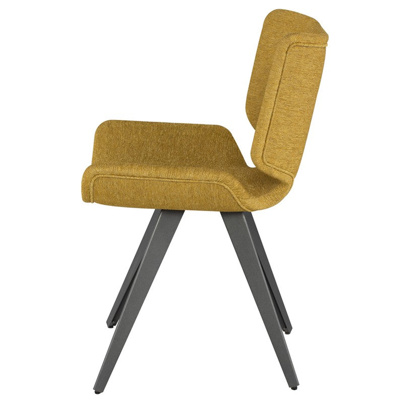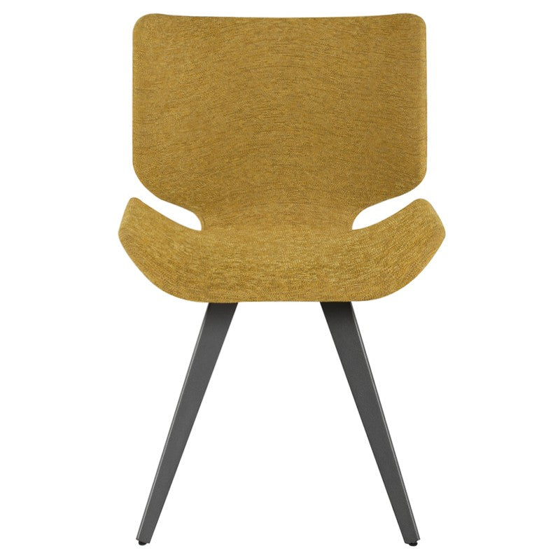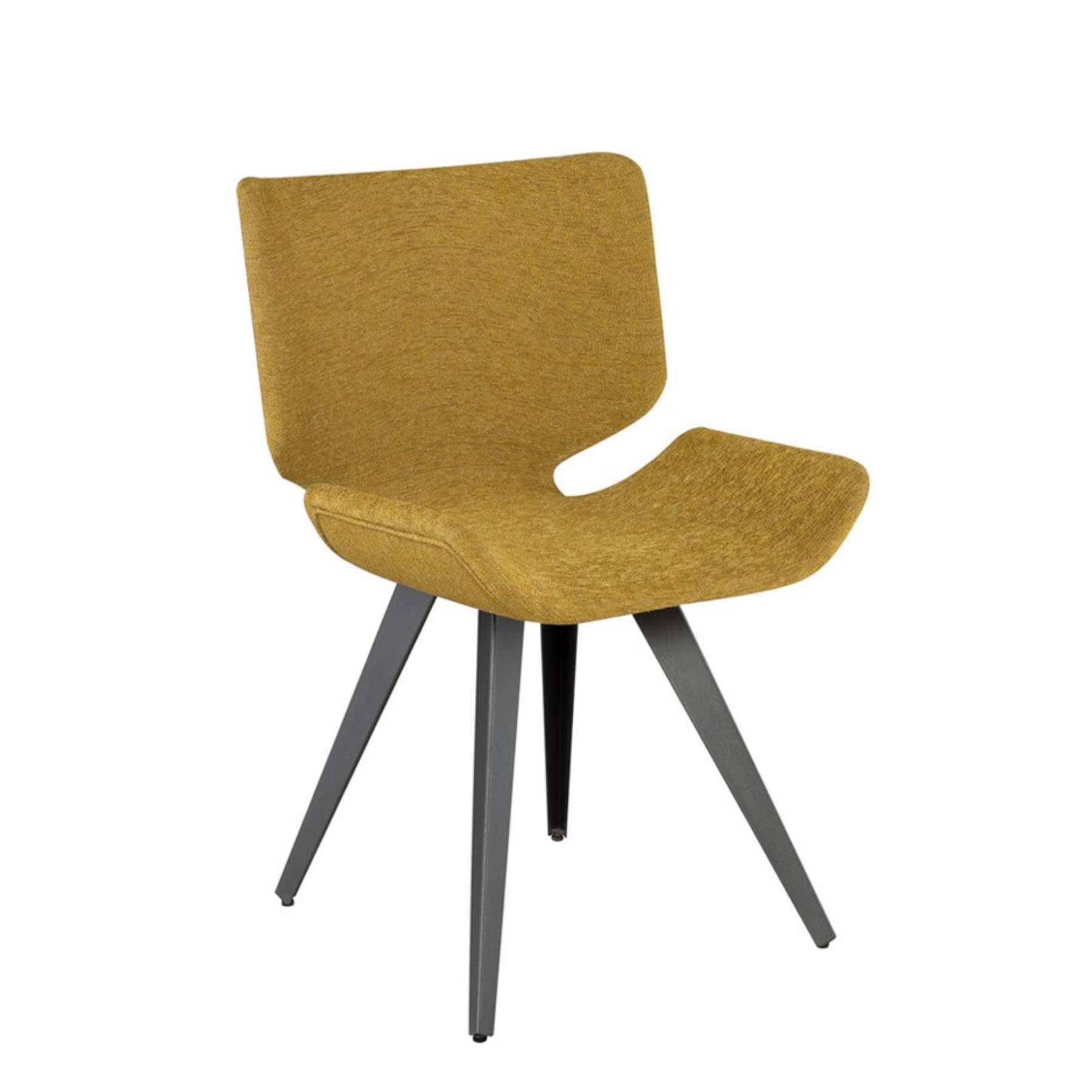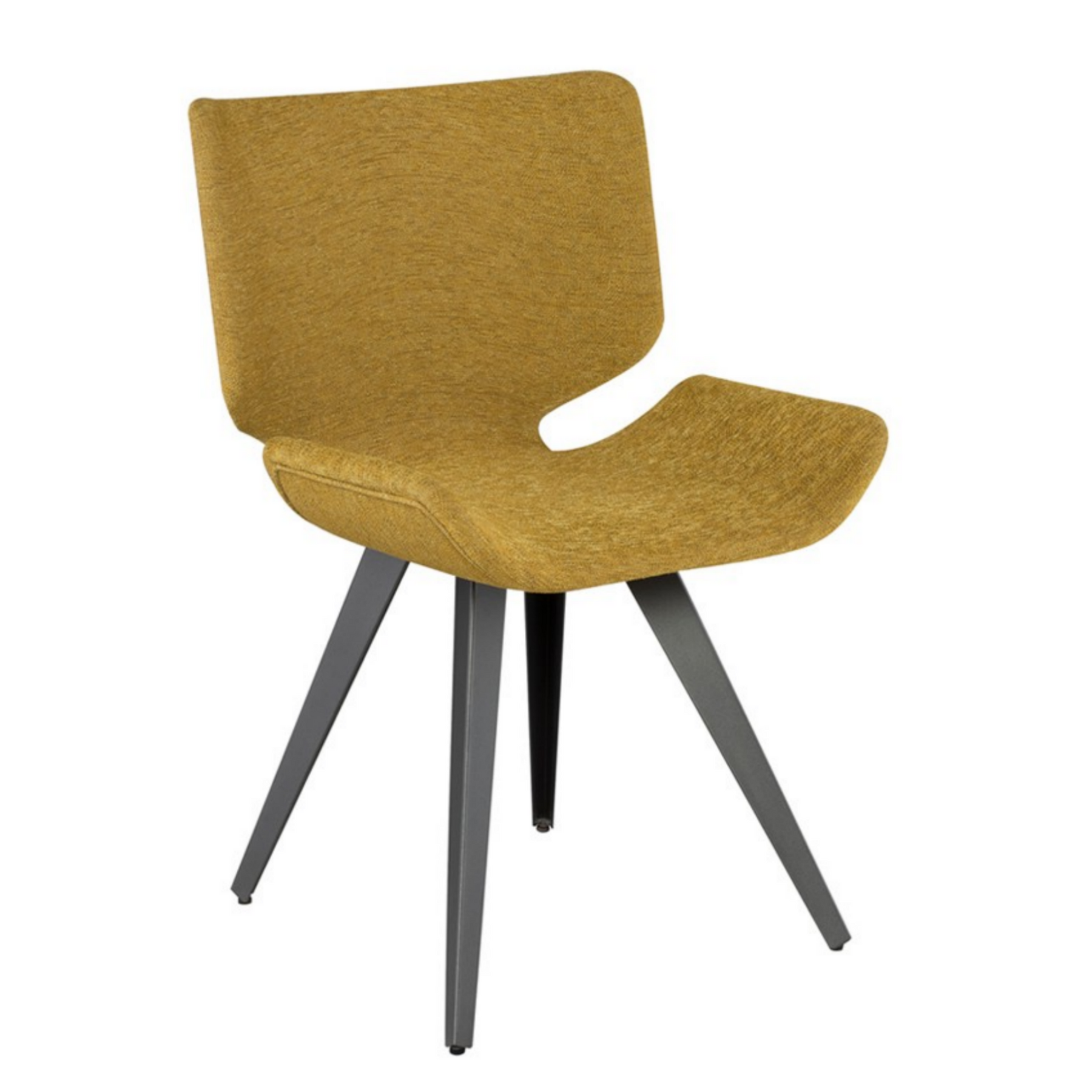 Bold and unconventional, this contemporary dining armchair features an eye-catching design that will bring drama to any dining space. Features a unique weaved backrest that is upholstered in our belfast heather grey fabric. Completed with black powder-coated steel frame in a smooth finish.