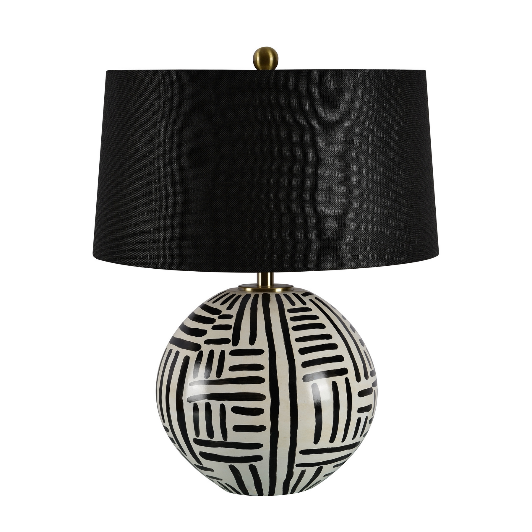 Regular price $429.00Materials: ceramic, cream & black fFinish, iron, antique brass, plated finish, black linen shade