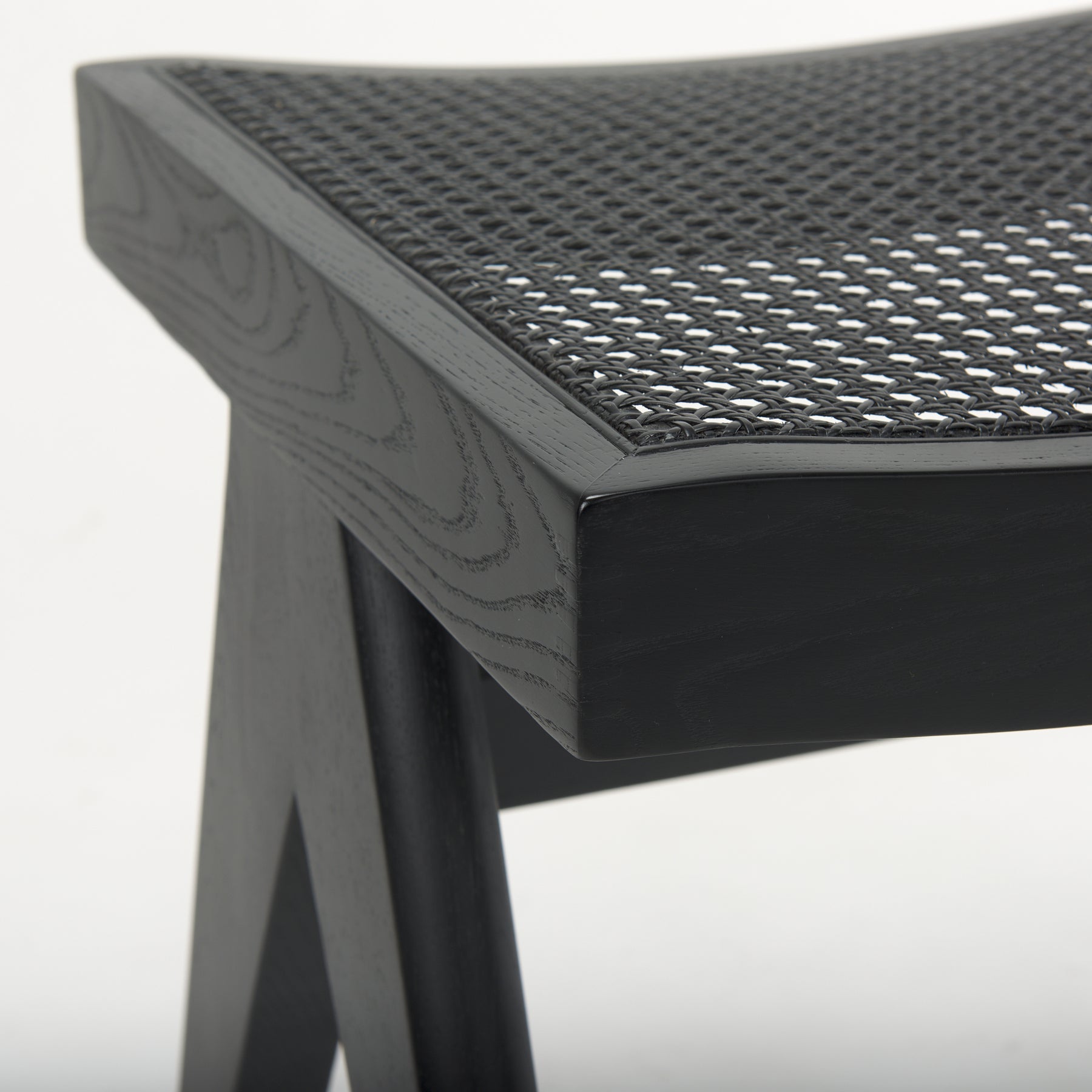 The GAVI wooden stool is a charming piece that will fit perfectly into the contemporary aesthetics. This stool is full of character, from its ergonomically designed cane seat to its expertly crafted solid wood base that features simple lines and a matte black finish that enhances the beautiful grain of the wood.