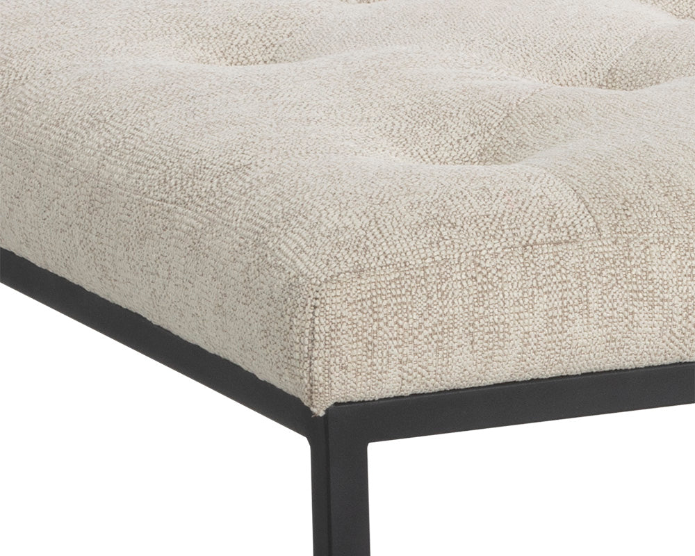 Upholstered in a gorgeous cream biscuit-coloured woven fabric, this accent chair is a showstopper. The sleek silhouette combines mid-century modern design with updated styling to add undeniable charm to any space. The exposed black-metal angular frame is in perfect contrast to the plush, rich-textured cushions.