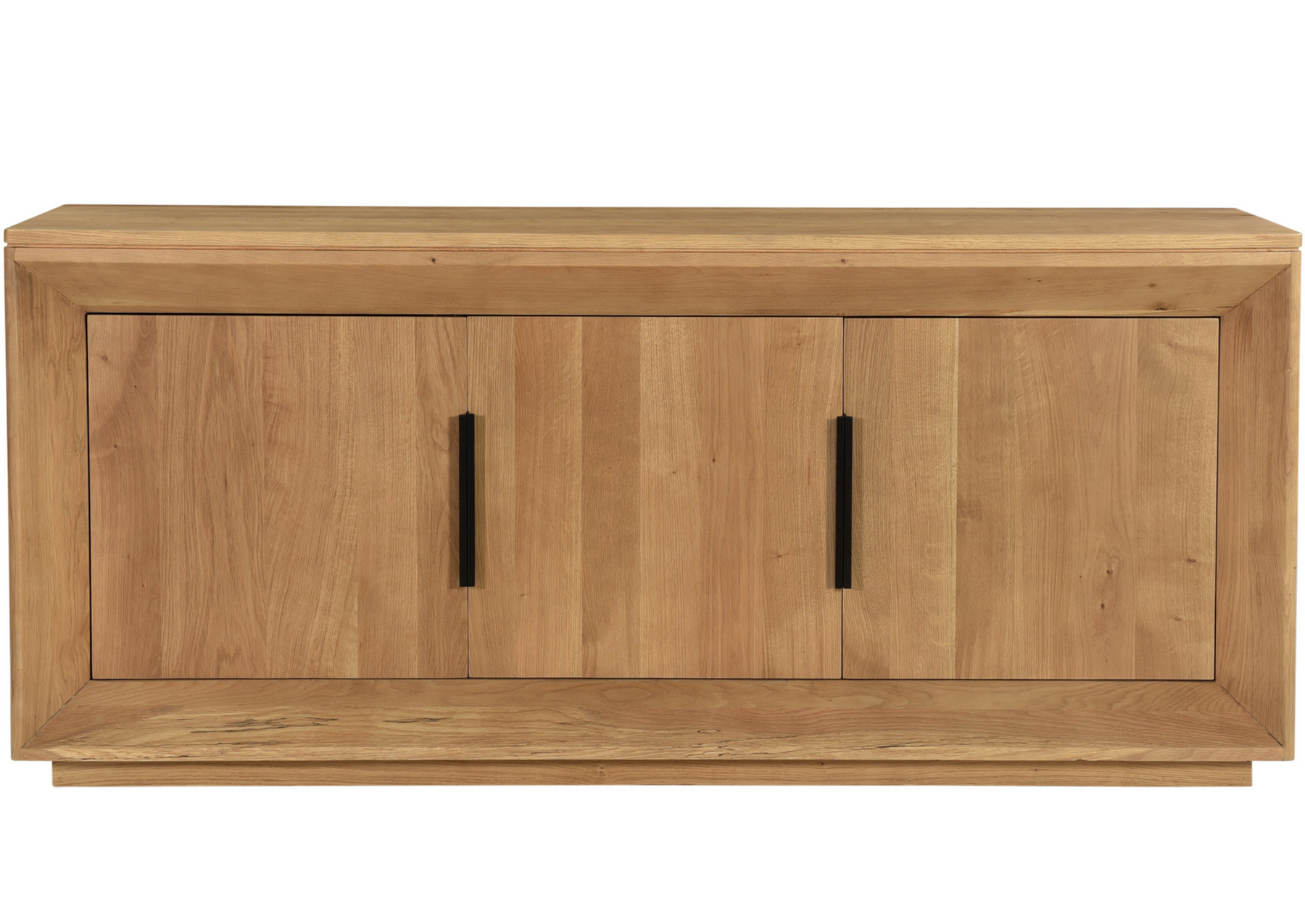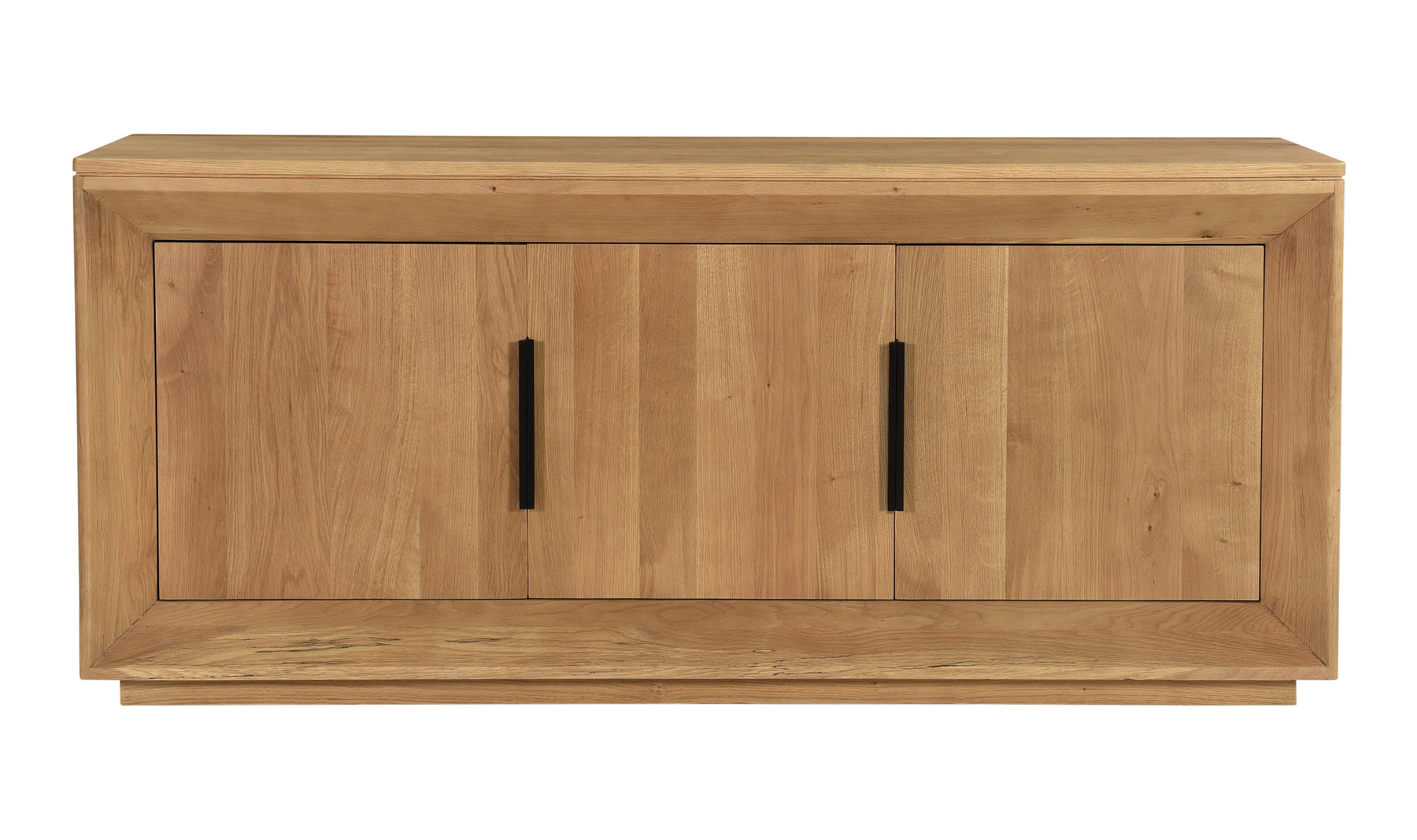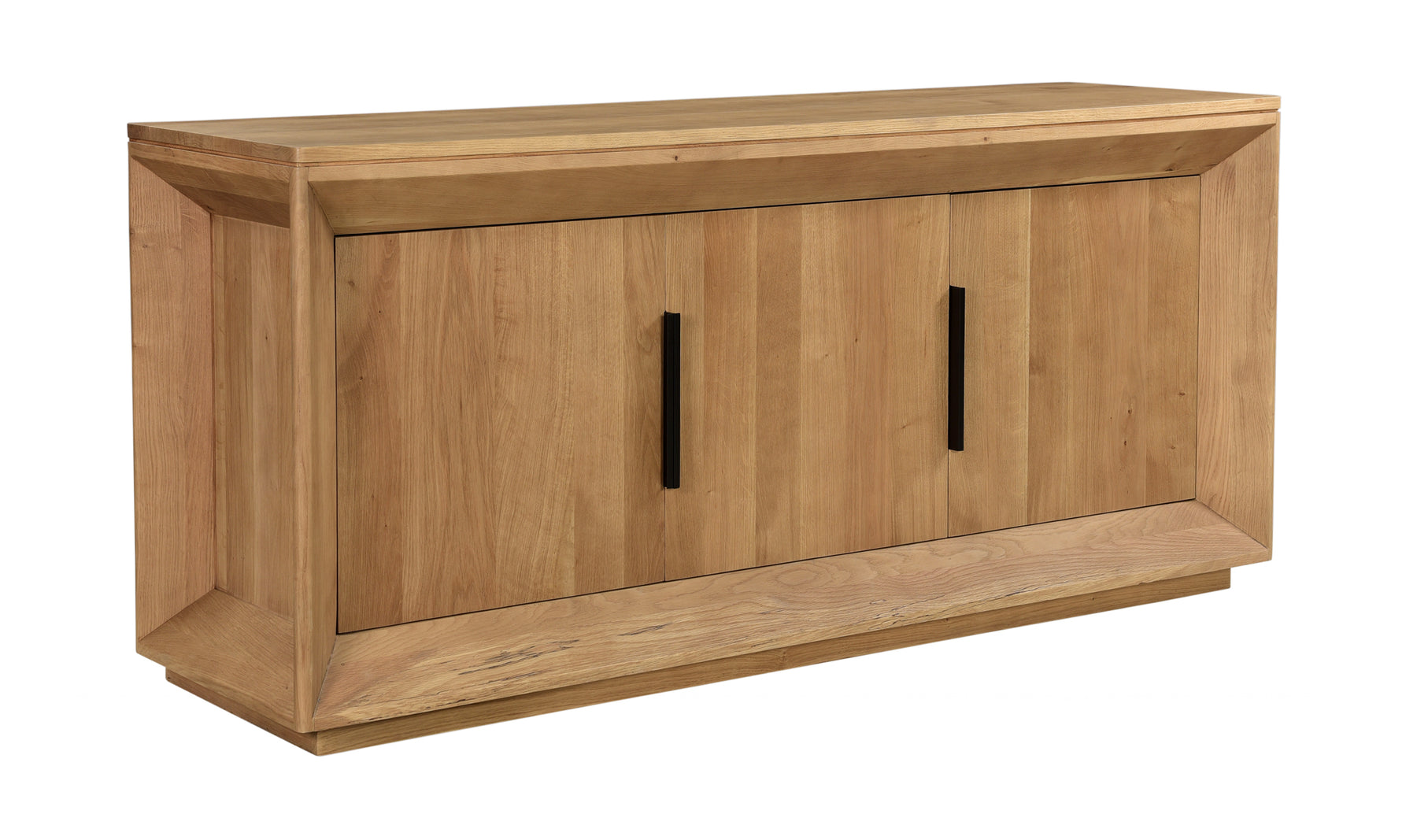 A sideboard that embraces contemporary cool while keeping things approachable. A friendly dining room addition, Braedin's crisp profile pairs with the soft organic feel of its solid oak frame, a play in contrasts that perfectly elevates any dining setup. Braedin's doors open wide to reveal expansive storage, with plenty of room for all your dining utensils and accessories. Modern, casual and warm, this sideboard’s comfortable feels combine with a warm contemporary aesthetic to make the Angle a suppertime standout.