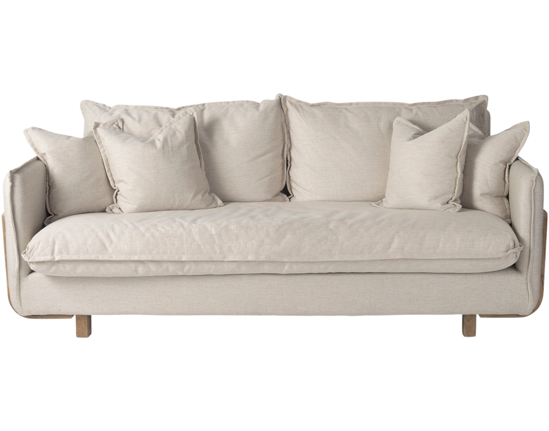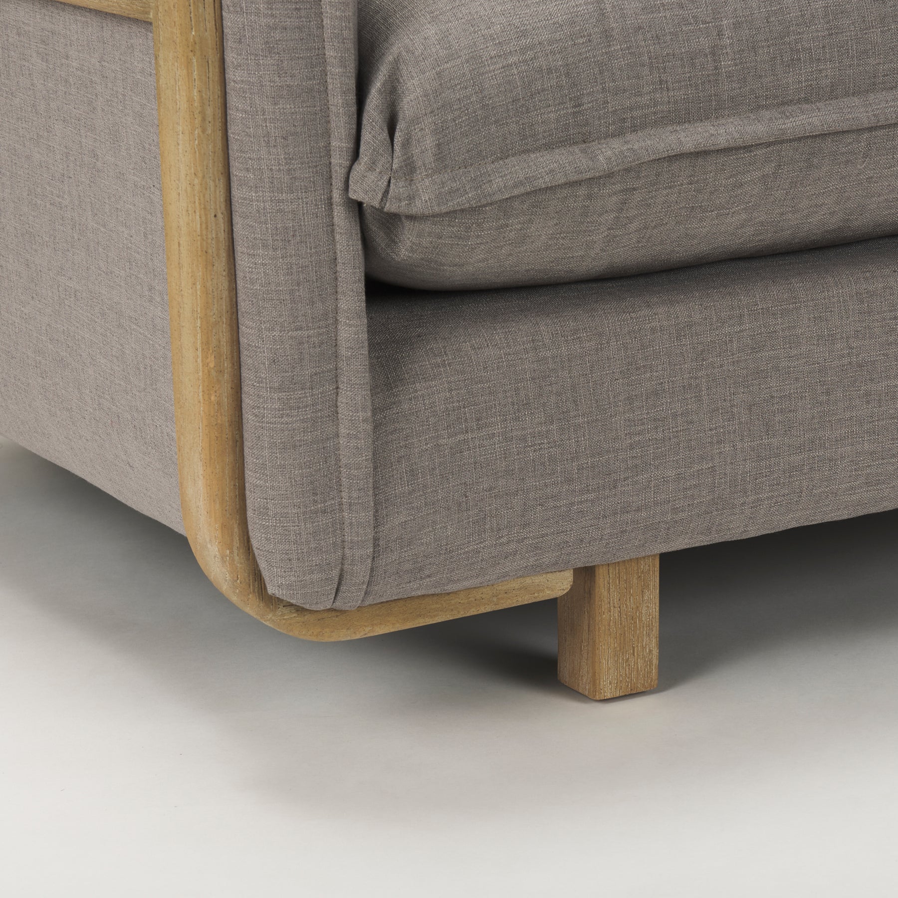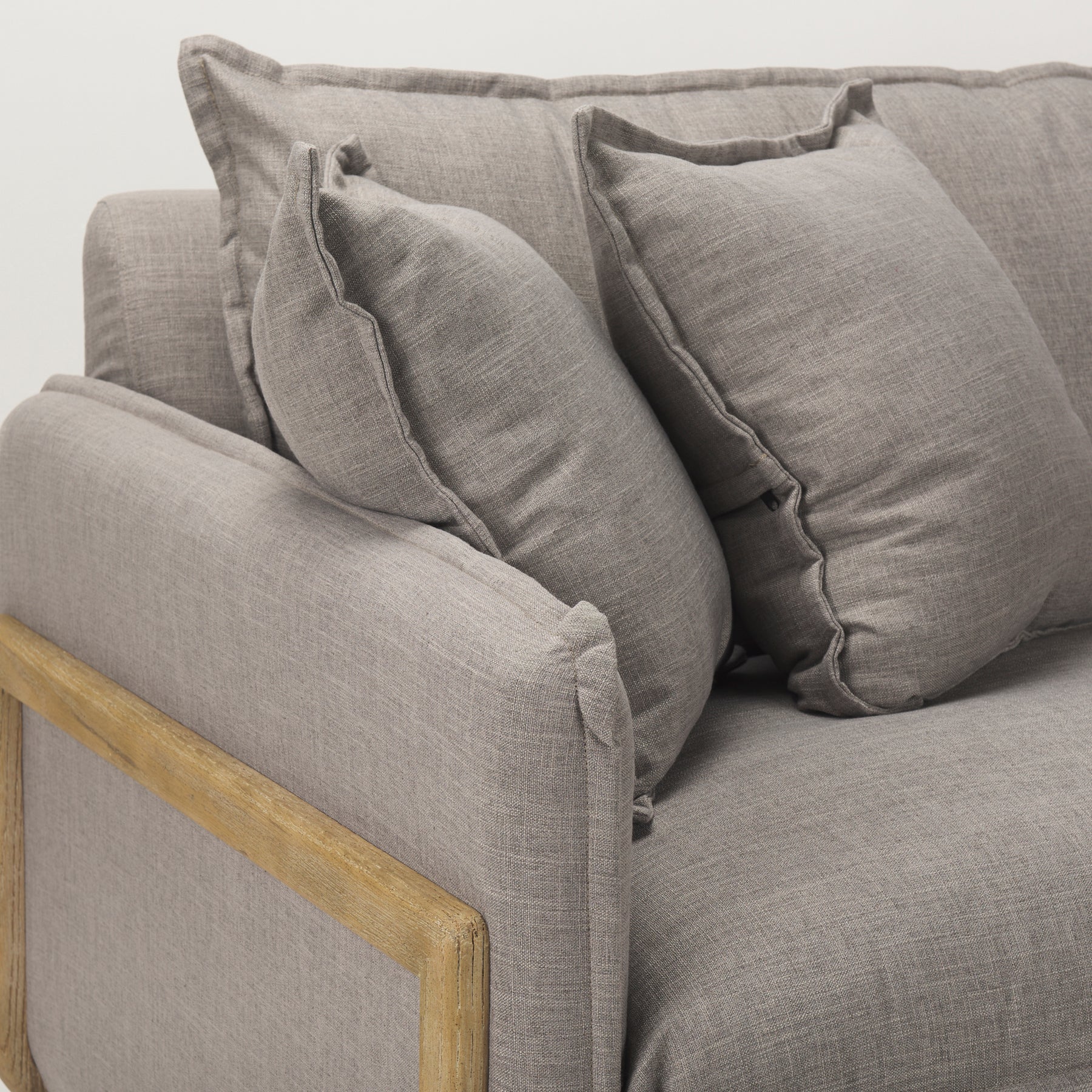 Crafted from solid wood, the ROWEN is a spectacular, upholstered sofa that comfortably seats three. Featuring an exceptionally durable and sturdy four-legged mango wood frame finished in a natural brown polish, the ROWEN boasts of plush, fabric wrapped seating that is not only comfortable but also complements the wooden components of this ritzy sofa. Equipped with two detachable back cushions that add to its luxurious seating experience, the ROWEN makes for the perfect addition.
