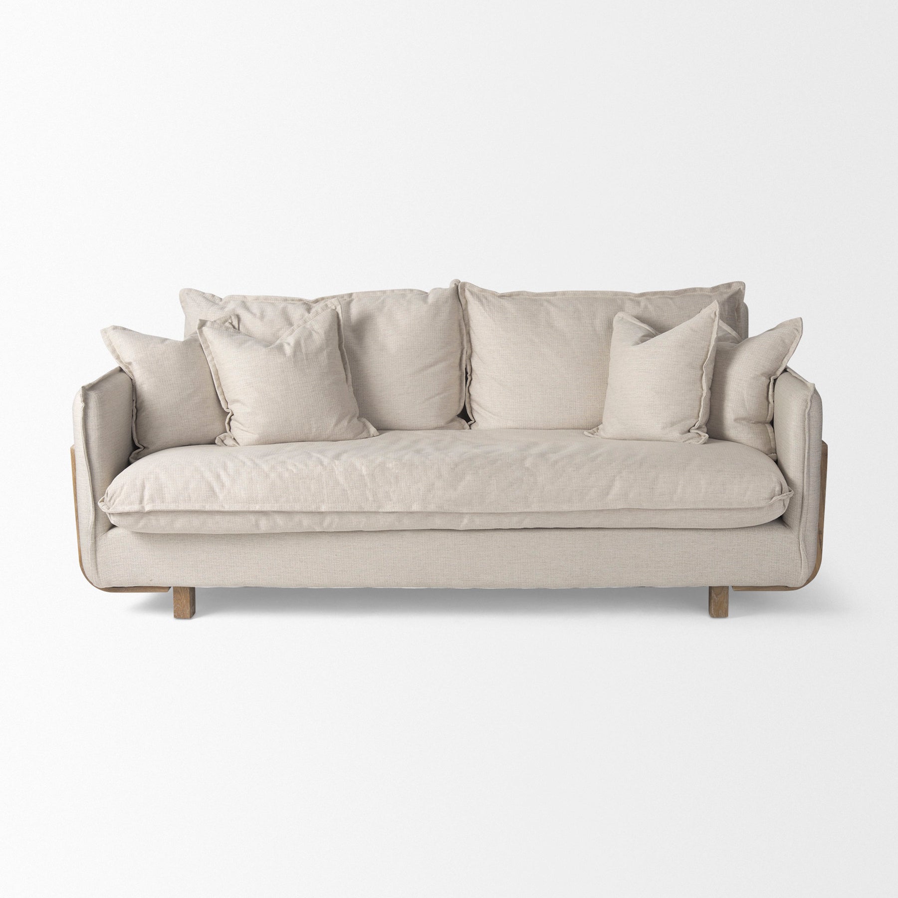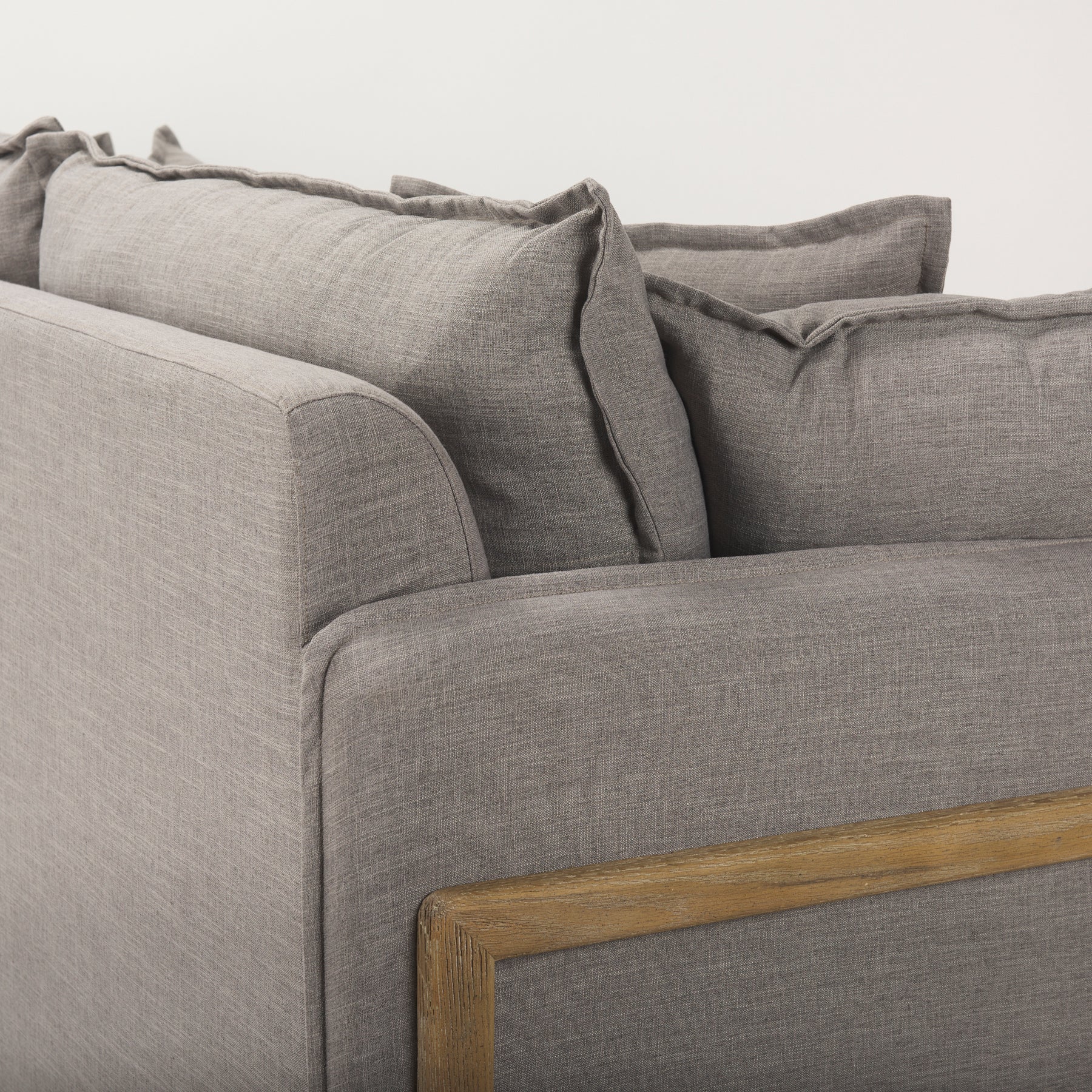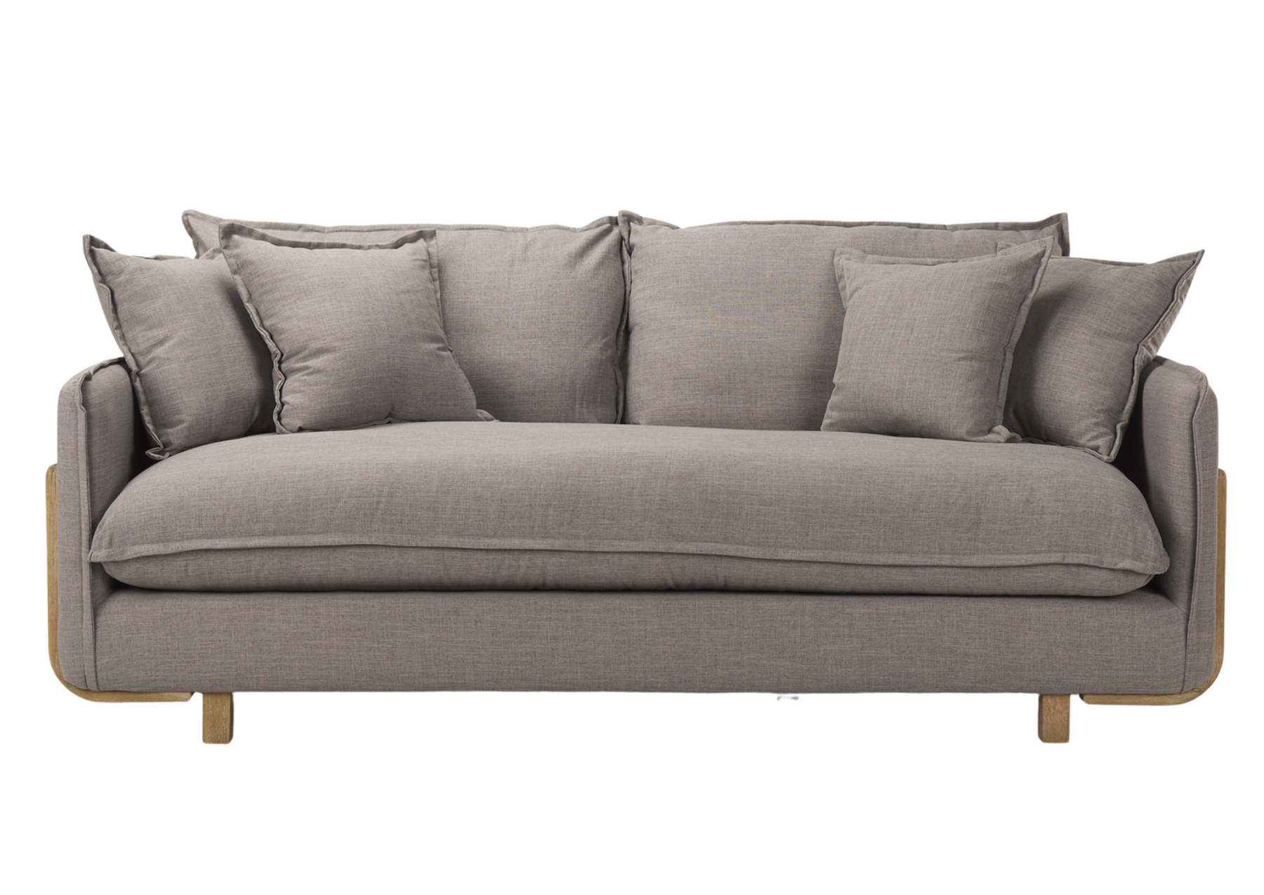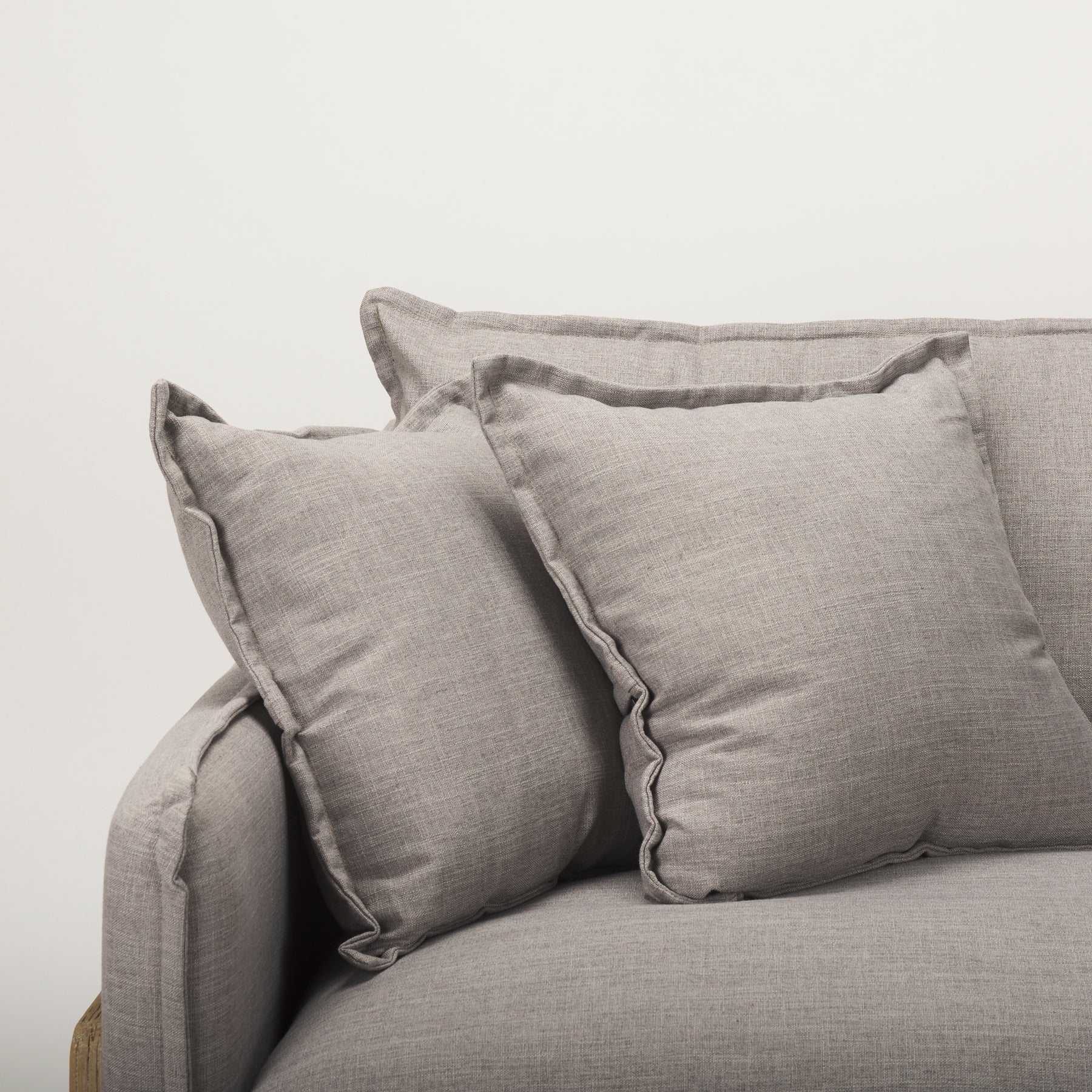 Crafted from solid wood, the ROWEN is a spectacular, upholstered sofa that comfortably seats three. Featuring an exceptionally durable and sturdy four-legged mango wood frame finished in a natural brown polish, the ROWEN boasts of plush, fabric wrapped seating that is not only comfortable but also complements the wooden components of this ritzy sofa. Equipped with two detachable back cushions that add to its luxurious seating experience, the ROWEN makes for the perfect addition.