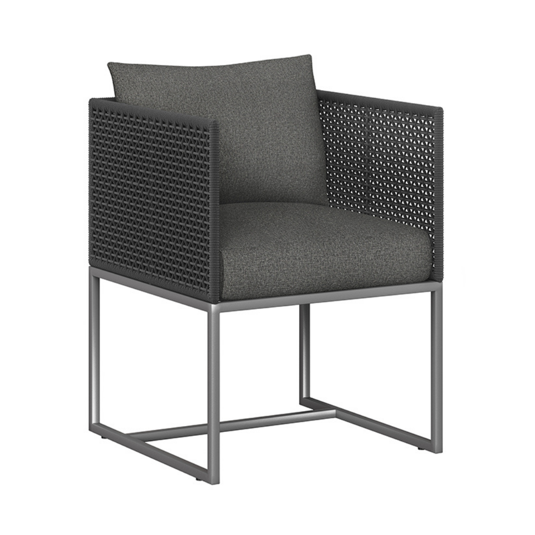 A sophisticated contemporary modern design. The UMBRIA outdoor chair's show stopping geometric base adds an edgy flair to your outdoor dining setup. Subtle scaling on the back of the waterproof seat adds detail to your space. Store indoors during colder seasons to increase the longevity of this beautiful design.