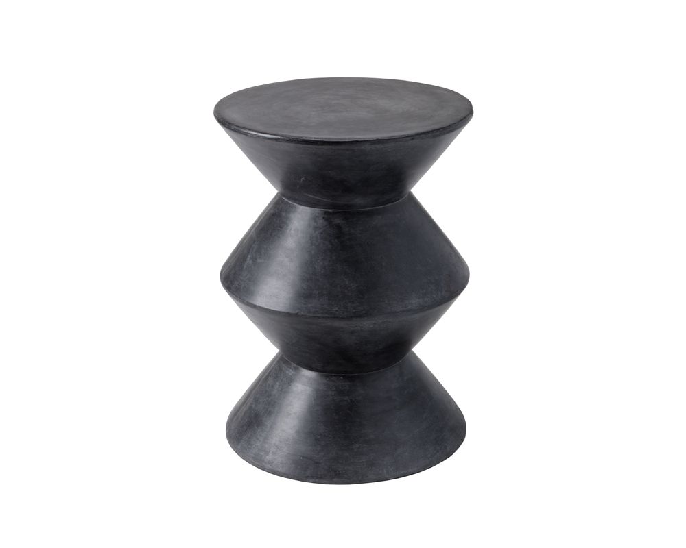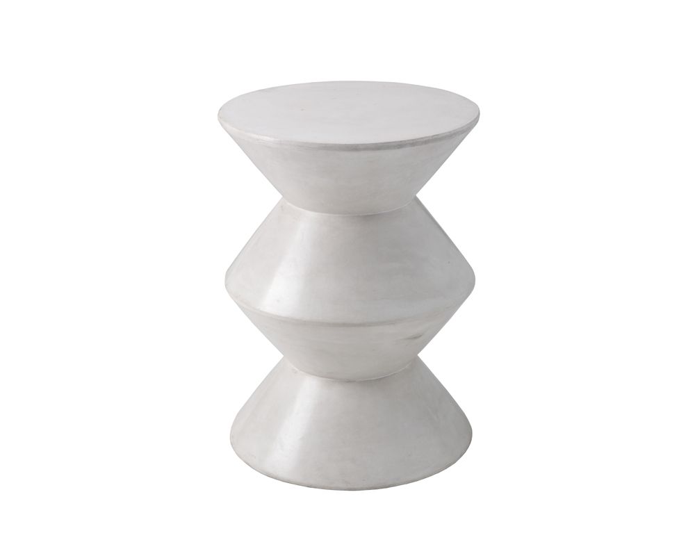 The layers on the cylindrical GASPAR end table give dimension and style. Stocked in white, black and grey concrete. Each piece looks different for a unique vintage finish. Suitable for indoor and covered outdoor spaces. Crafted from a natural concrete mix, each piece will look different, with variations of grey hues that will enhance over time.