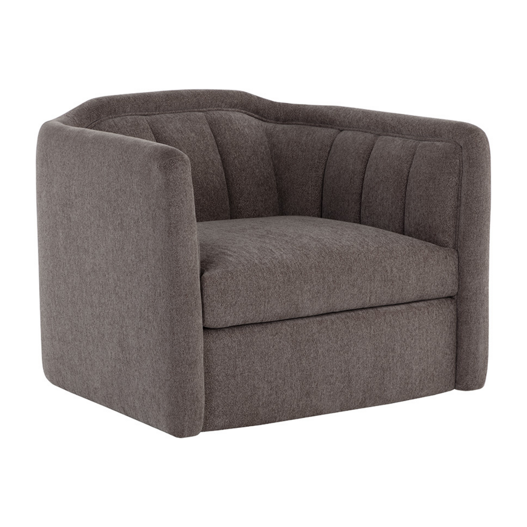 Introduce lavish comfort to any space with this contemporary swivel armchair. Features vertical tufting on the interior. Completed with a wooden frame and base.