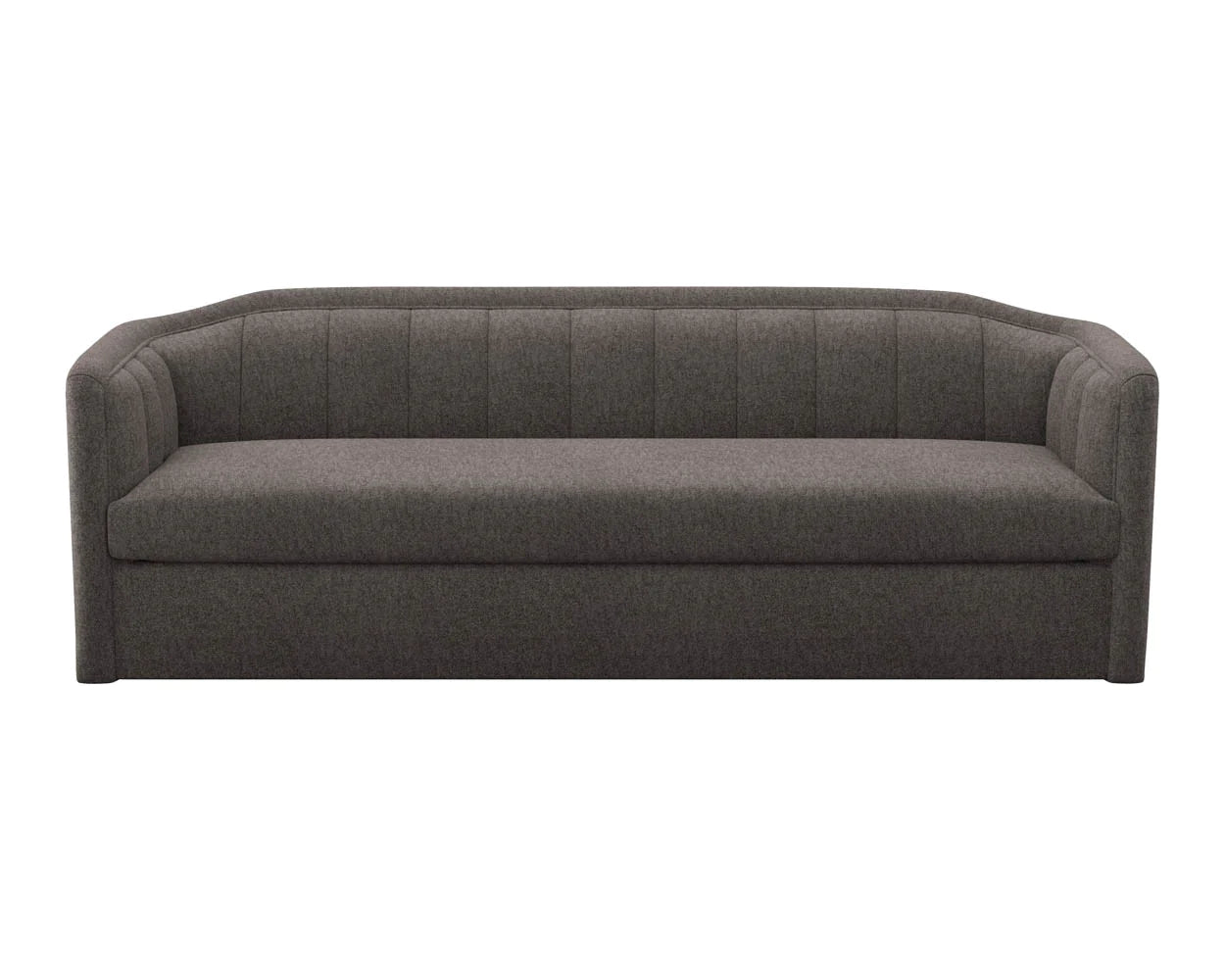 Luxury and comfort blend together in the BELTAIN Sofa. Vertical channeling and a low rounded profile make this piece stand out in any living space. Generously upholstered in our luxurious lucia cognac Italian leather. Handle with Care: This design has been crafted with 100% aniline leather. Leather is a natural material; as such, colour variations, markings, wrinkles, grooves and light scratches are acceptable and appreciated characteristics. No two pieces are alike. Visit our Product Care page for more information on how to ensure the lasting beauty of this piece.