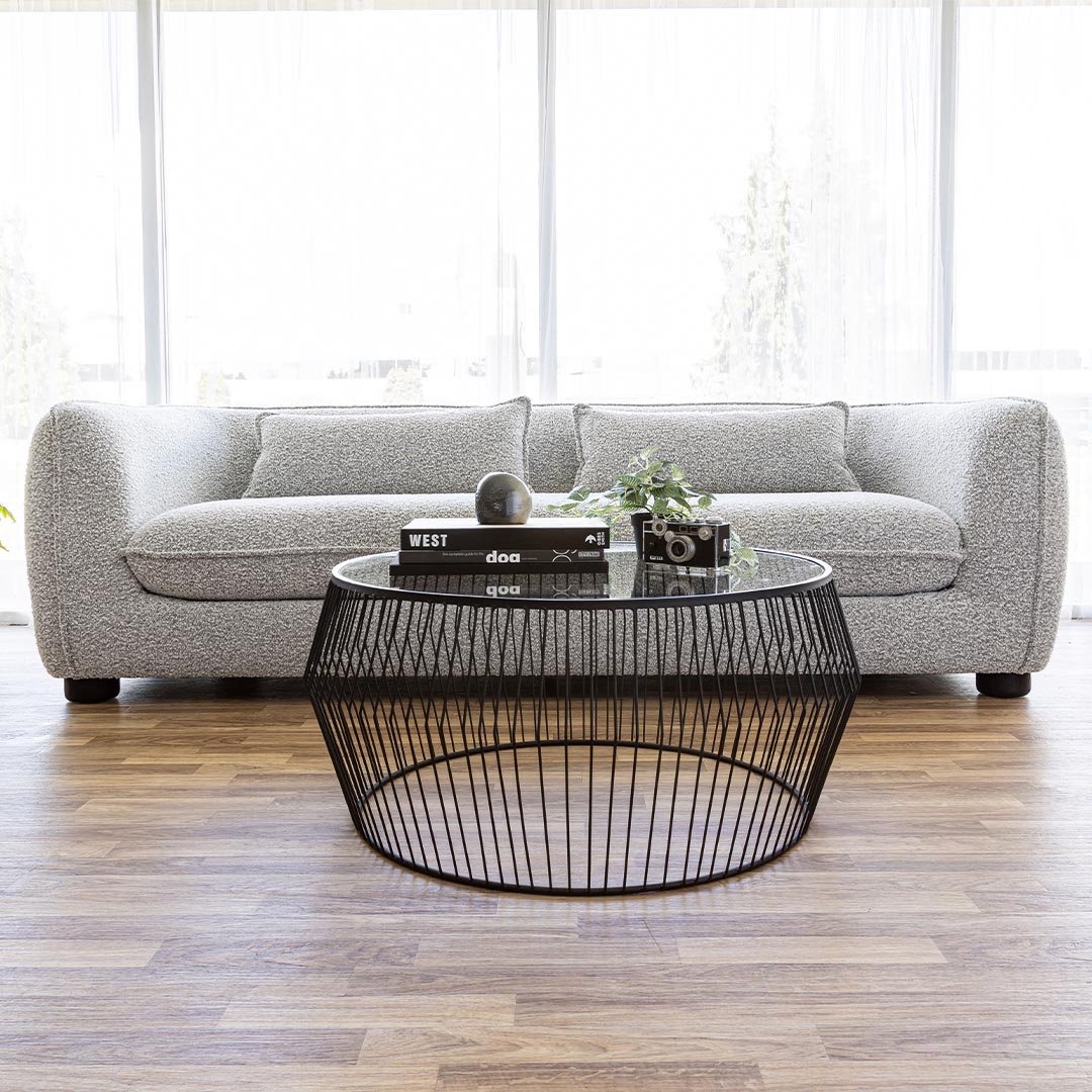 The COLEMAN is a luxurious 3-seater sofa that boasts of perfectly padded, upholstered deep seating braced by a wooden chassis that is mounted on a four-legged solid iron frame. Wrapped in a plush fabric that complements the medium-brown wooden accents and matte-black toned iron legs, the COLEMAN makes not only for a visually enticing seating option but also for a stable and sturdy one in any contemporary space.