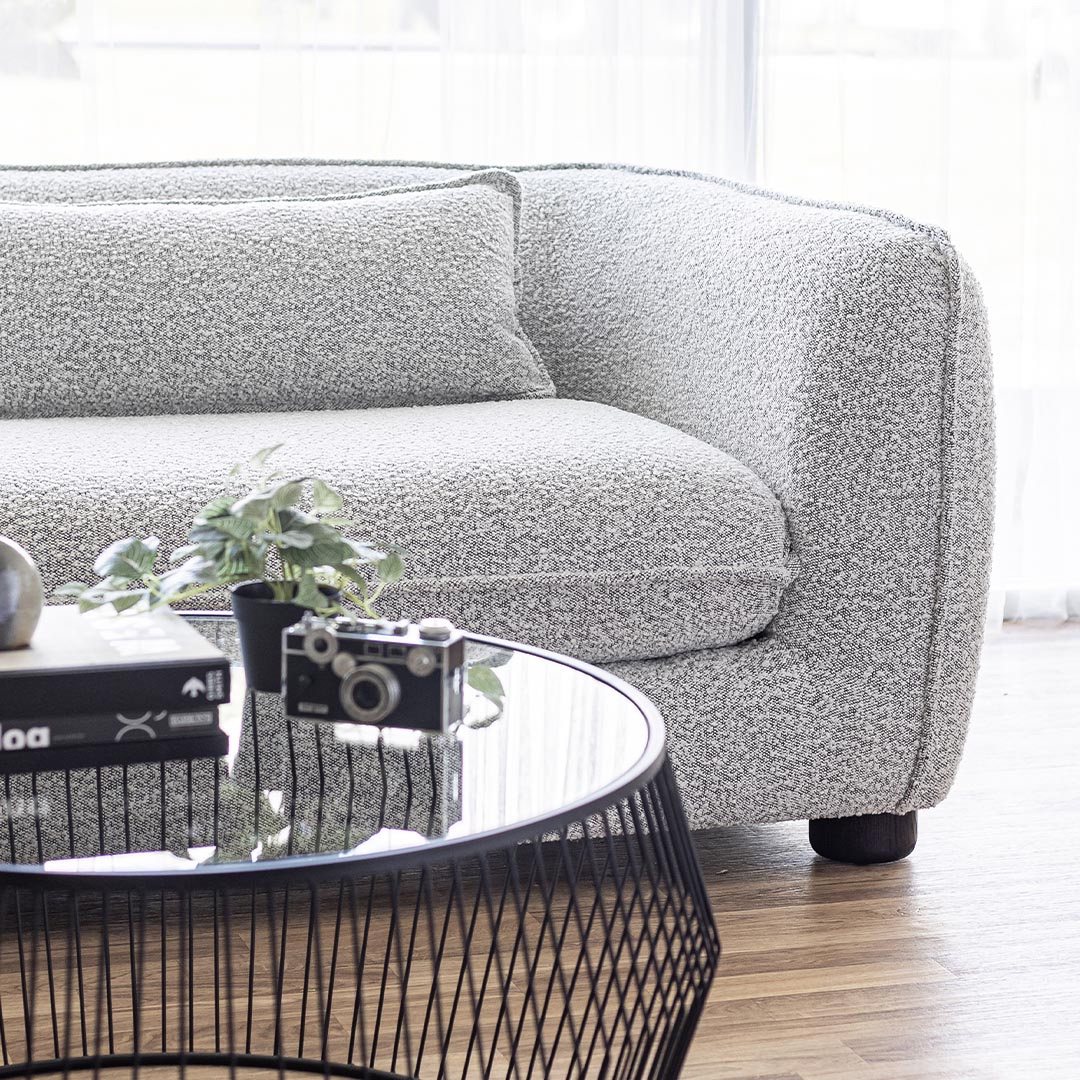 The sculptural curves of our POSY sofa are upholstered in our fabulous bouclé fabric. Cute and curvy, this compact sofa will add easy charm and elegance to any room.