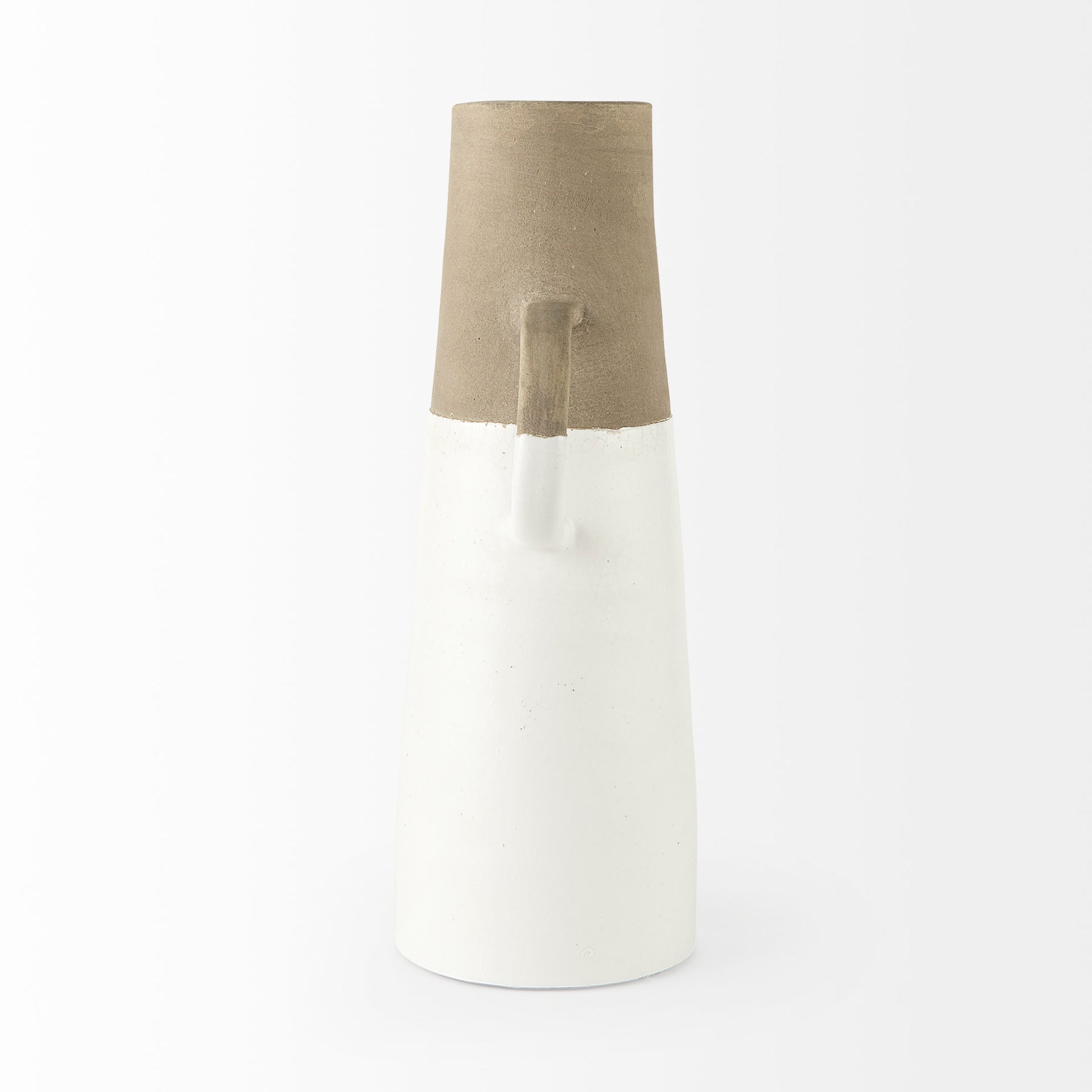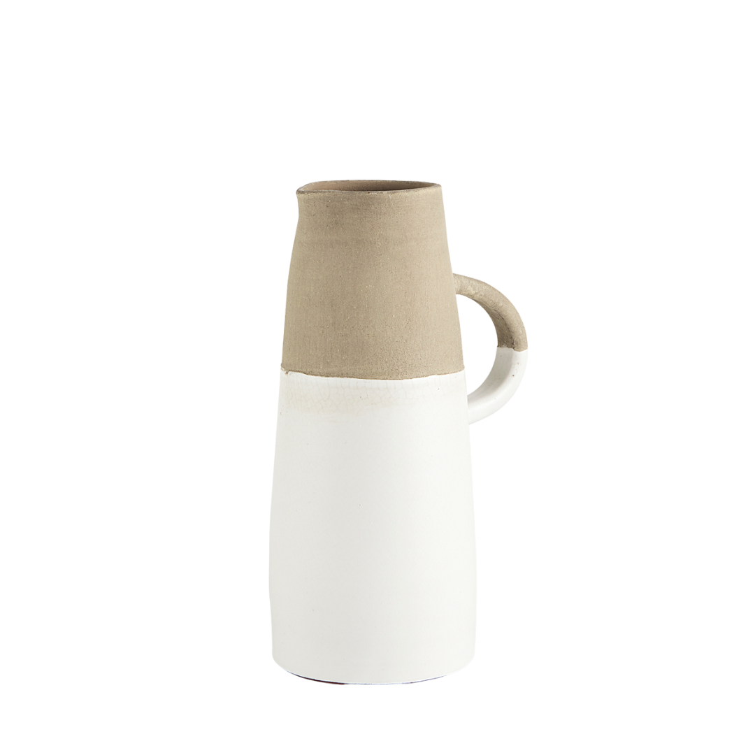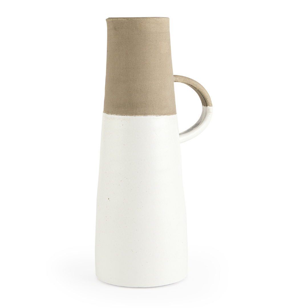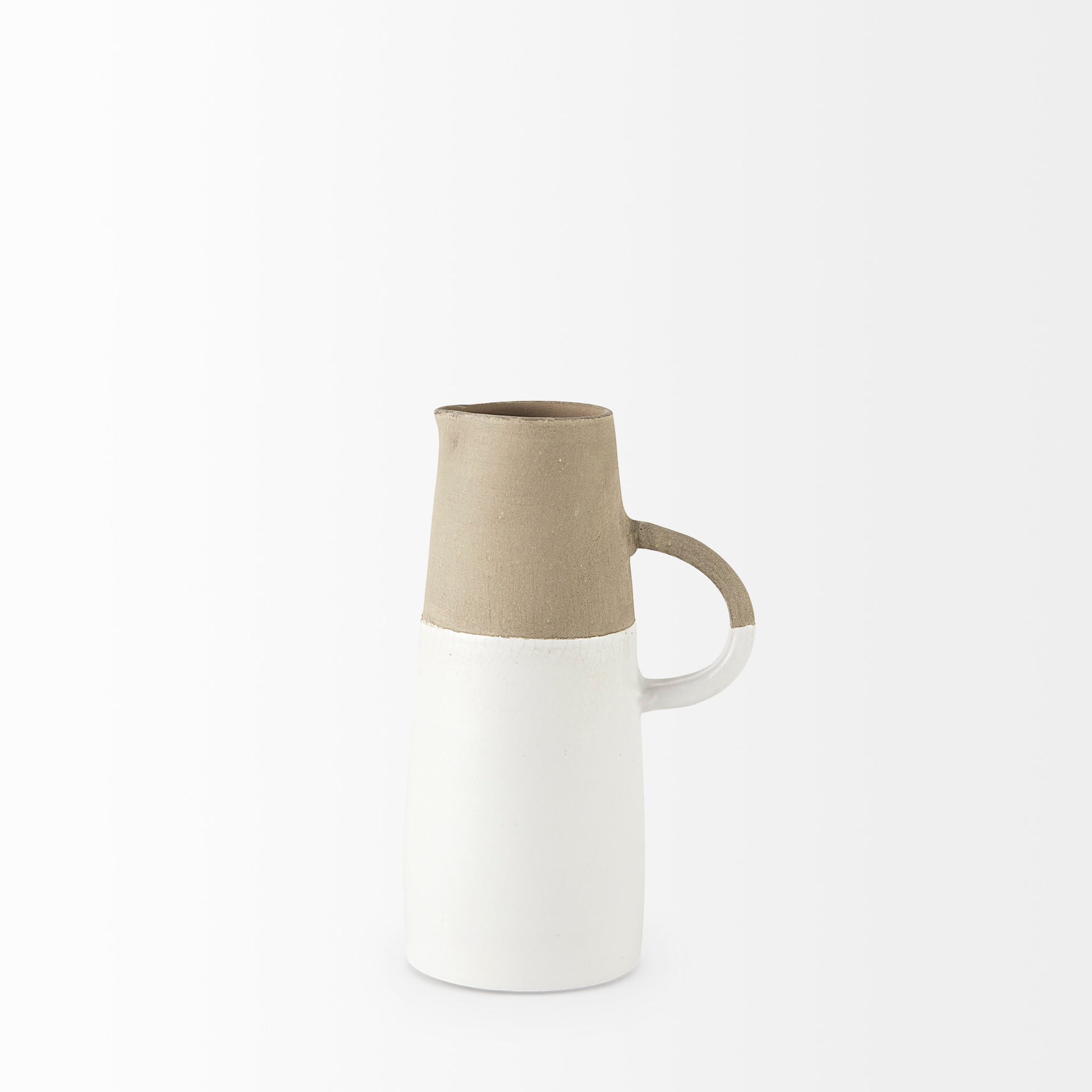 Meticulously crafted from ceramic and finished in a two-tone, neutral palette. Featuring a smooth, white-toned body that complements the naturally finished, tapered neck, this jug fits perfectly in spaces based on the Mid-century modern and coastal design styles, especially when paired with other pieces from this series.