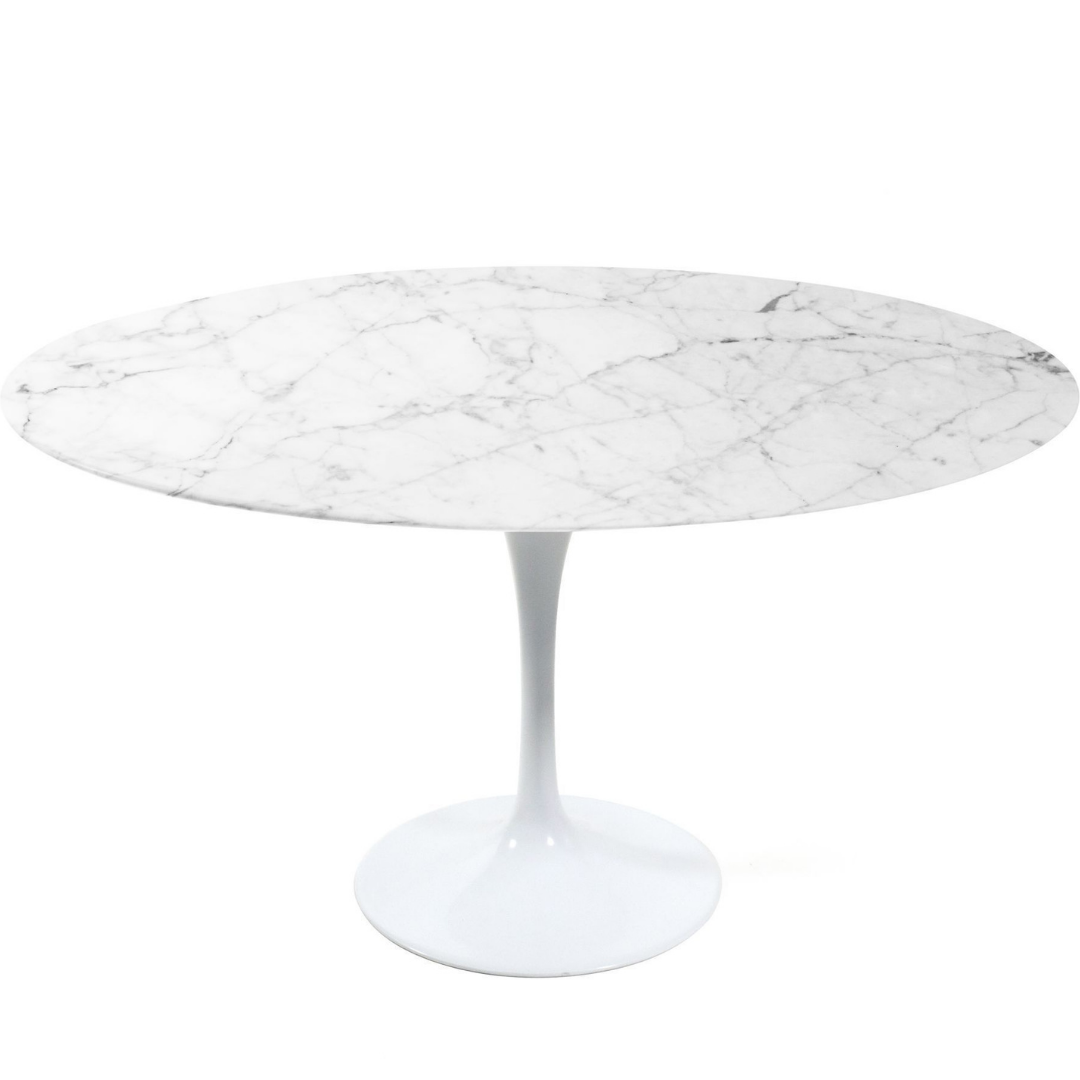 The modern TULIP table was inspired by his graceful 1956 design with a sculptural aesthetic. The marble top adds sophistication to your room while the powder-coated aluminum pedestal base provides maximum seating in any space.