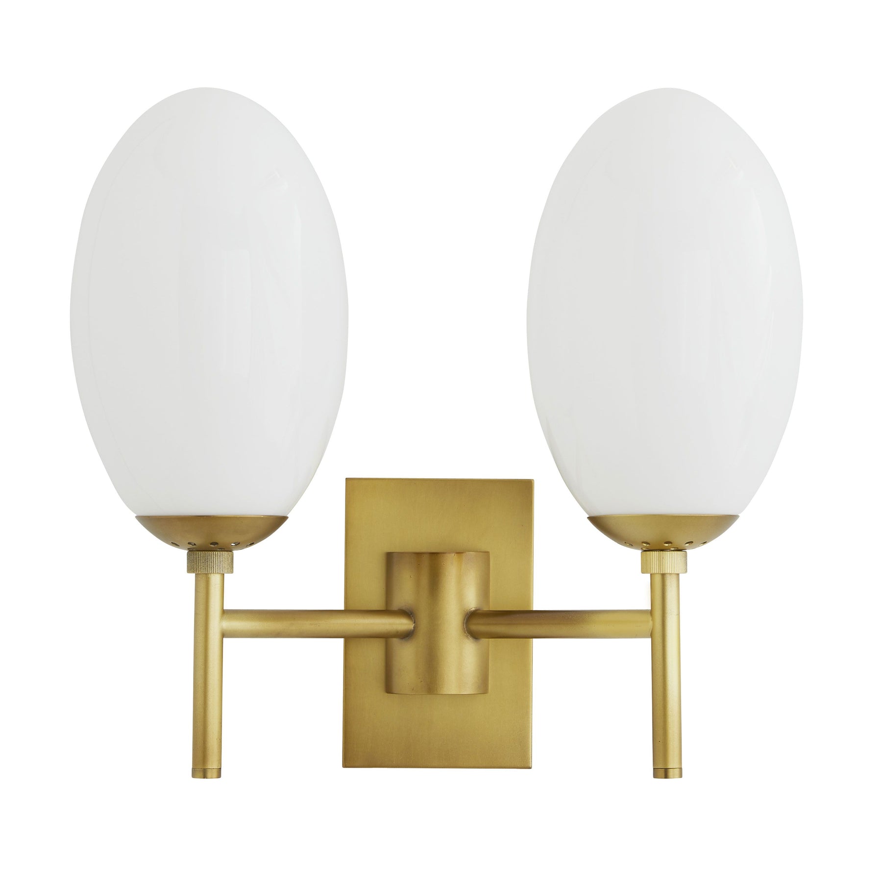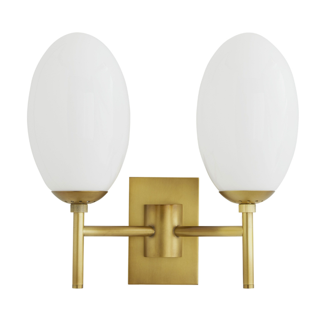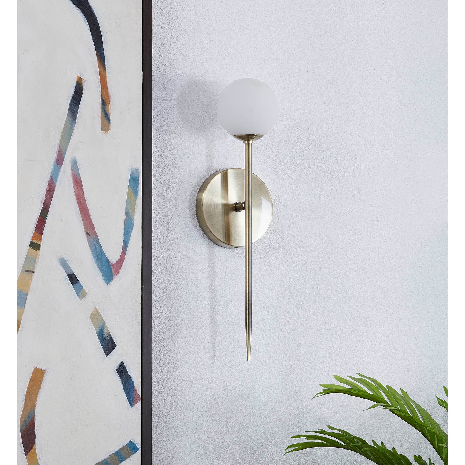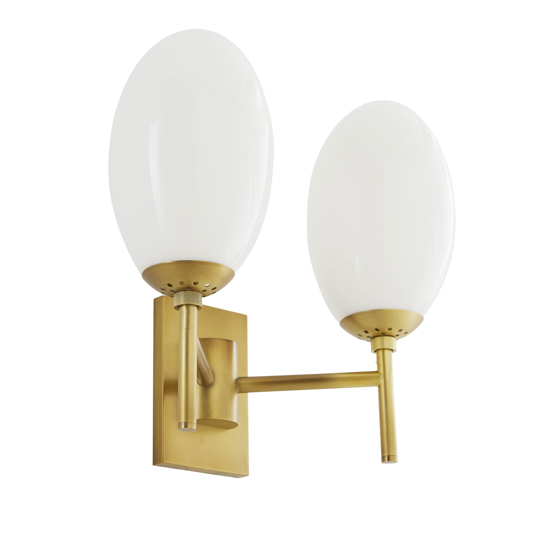 Regular price $259.00This piece may not be grand in size, but it is grand in impact. Featuring an antique brass finish on its iron structure and a bright off-white shade, its palette brings an air of glamor to the home. Arranged within a kitchen, or living room space, the sconce is just as stylish when set on its own as it is when several are arranged around the room.