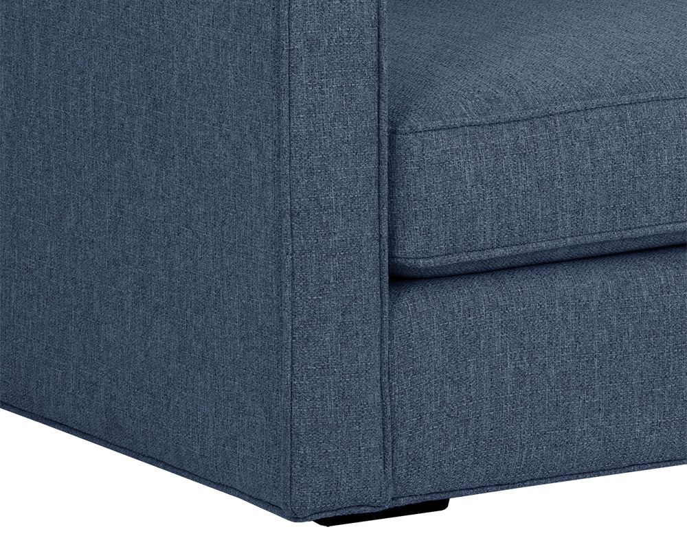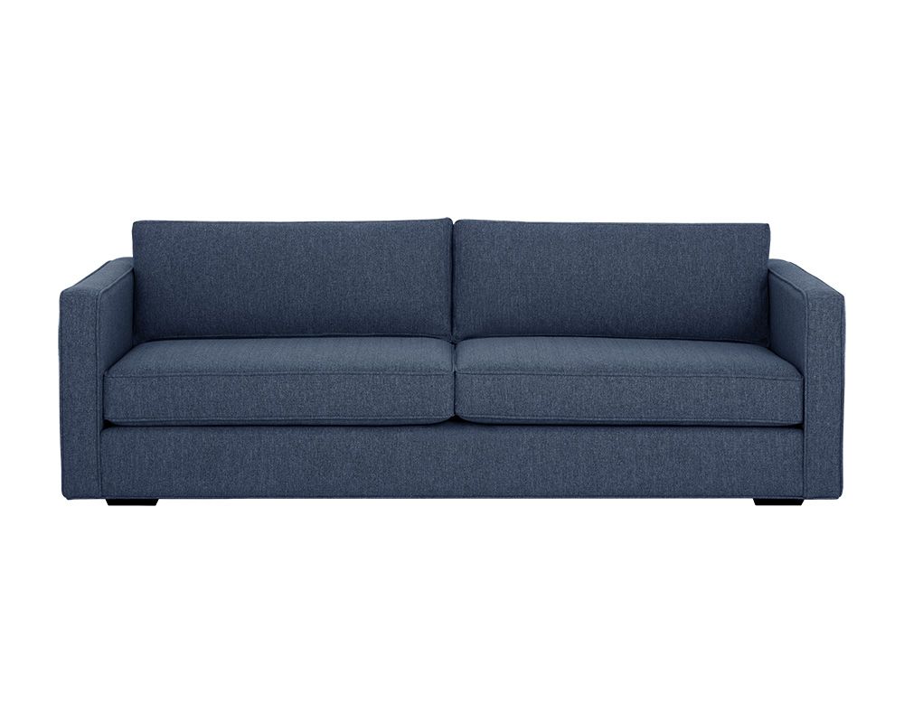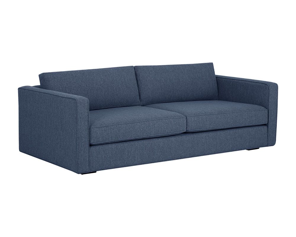 The ADRIANA sofa boasts transitional style with a classic silhouette. Features a comfortable seat with all-around piping for added definition. Stocked in blue and wicker performance fabric. This performance fabric features 32% REPREVE polyester; it is moisture repellant, stain-resistant, and easy to clean. REPREVE polyester is a high-quality yarn made from recycled post-consumer plastic bottles.
