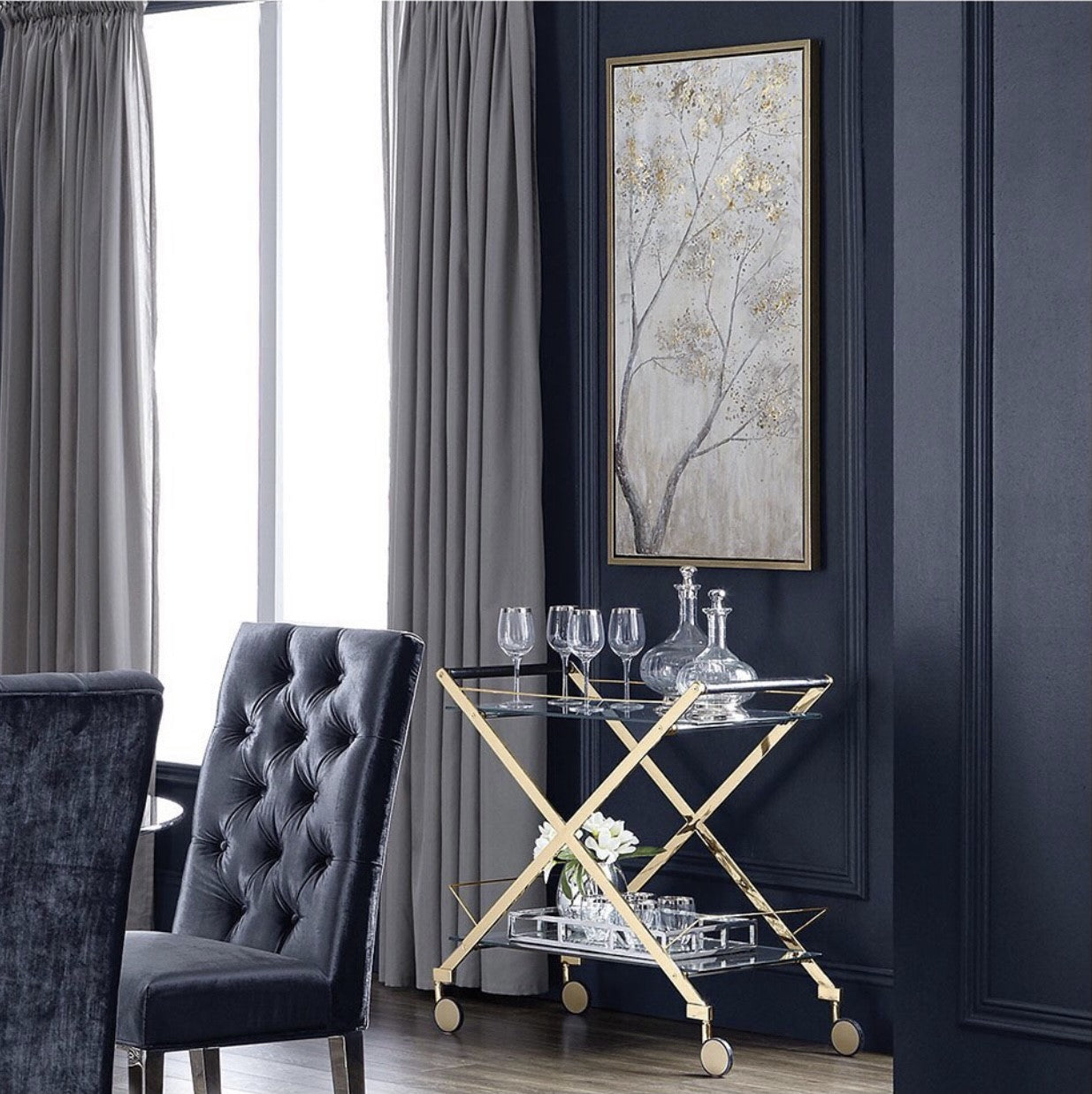 Regular price $539.00Simplistically designed to help you host and entertain, the BARRIC bar cart is perfect for the corner of any room in your home. It comes with glass shelving and an option of gold or polished stainless steel frame with casters.