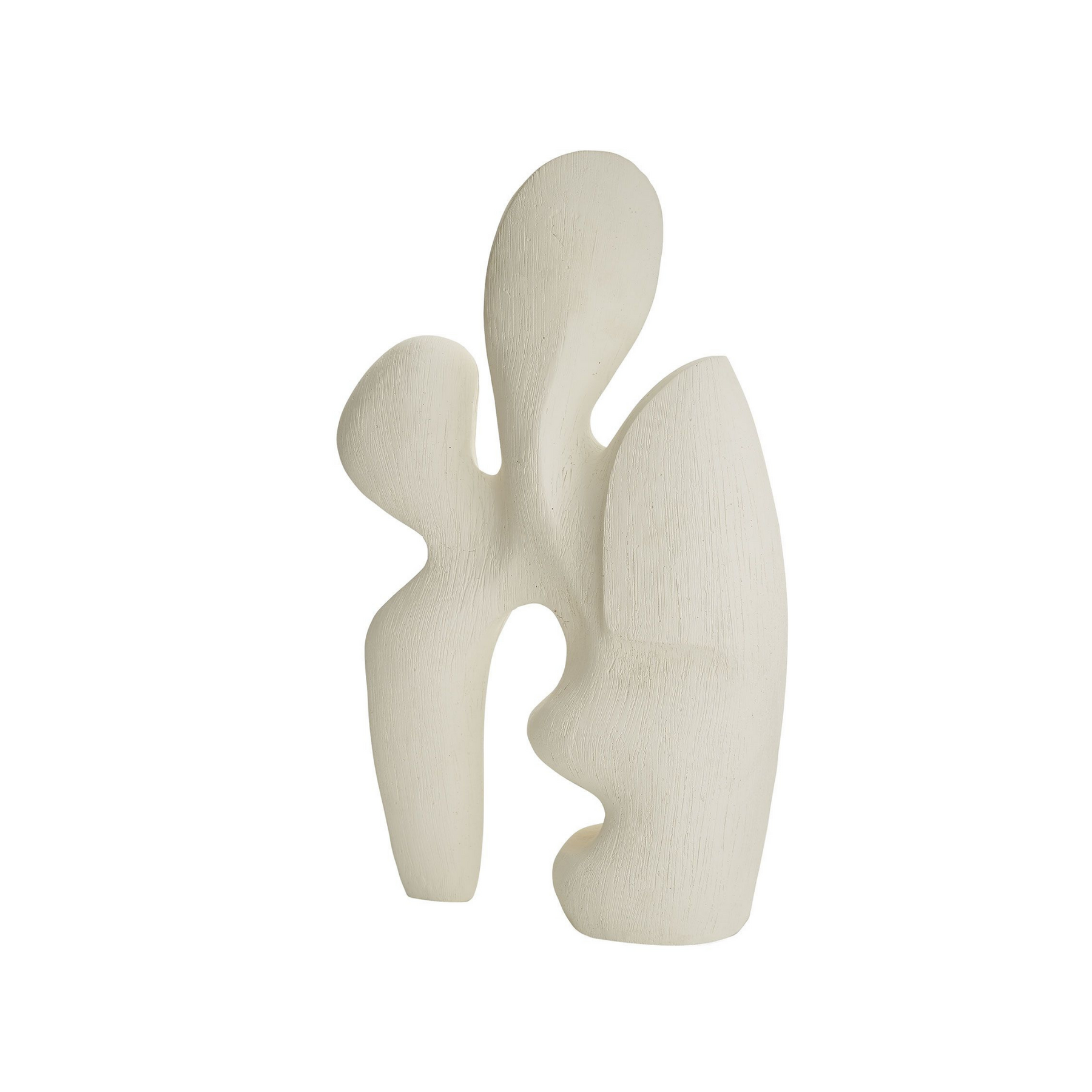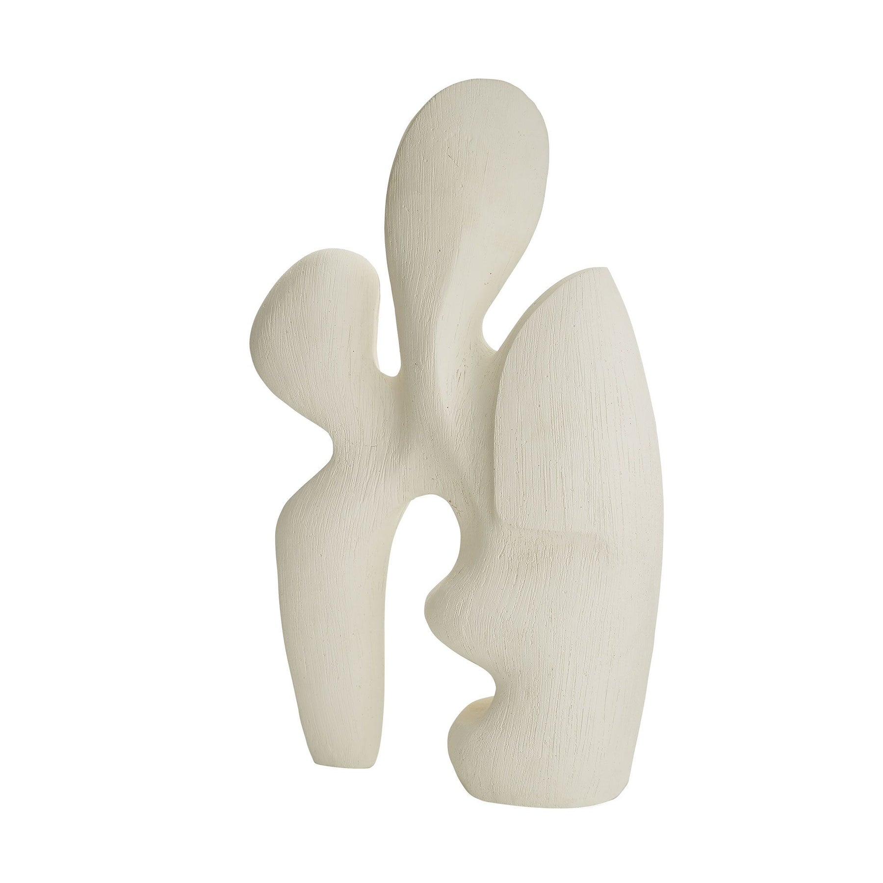 Inspired by the works of Pablo Picasso, this sculpture is abstract in its intrigue. Resin has been finished in gesso and features a combed etching throughout, adding tangible texture to its defiant structure. We believe its artistic representation is to be defined by the beholder. Finish will vary.