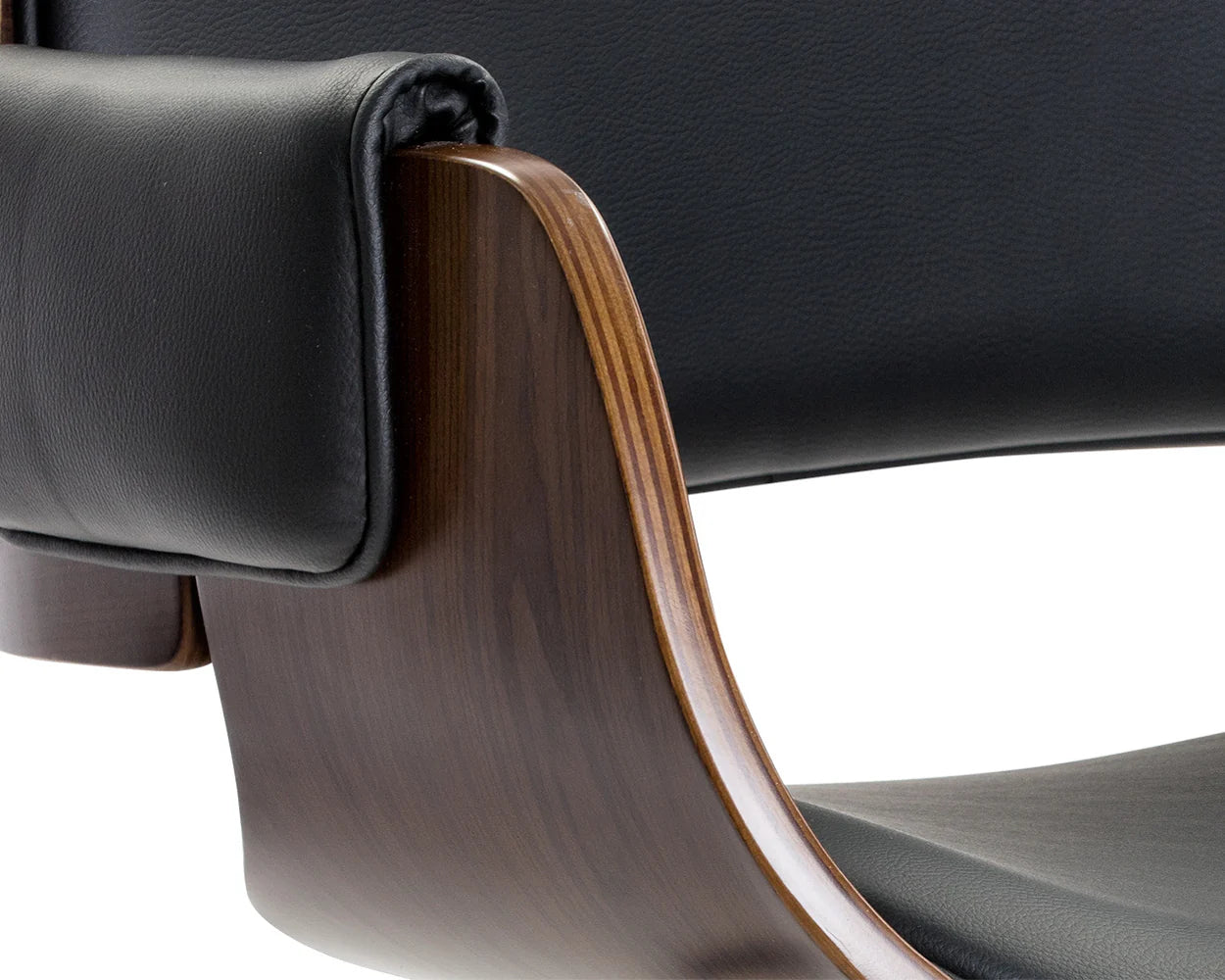 Regular price $659.00The retro inspired KEONI office chair features an adjustable seat with a curved veneer wood back complements the onyx vegan leather. Features a stainless steel base and castors for mobility.