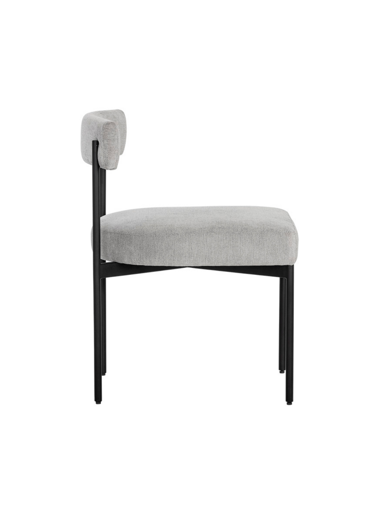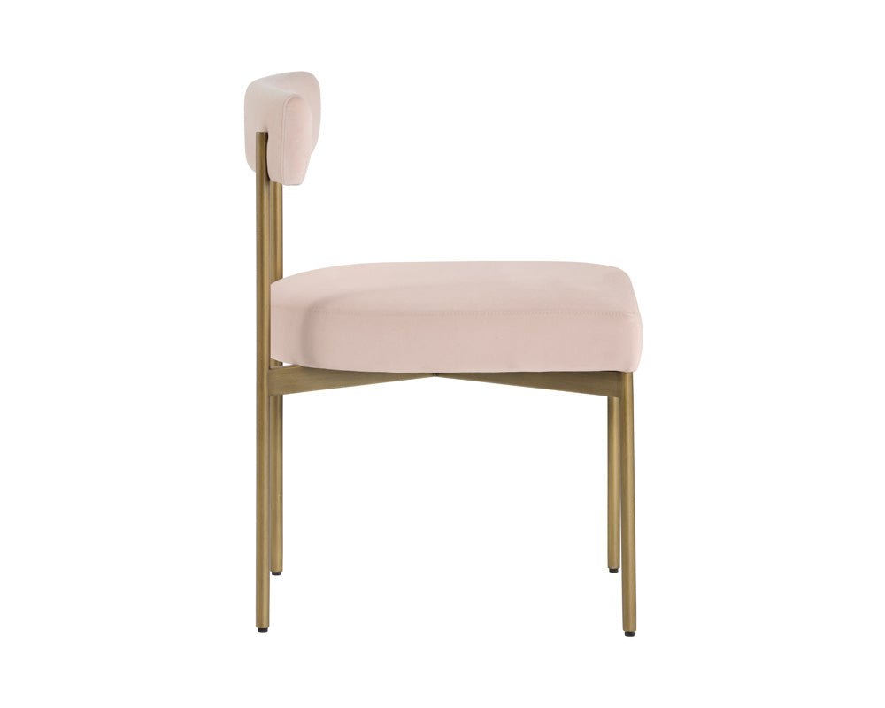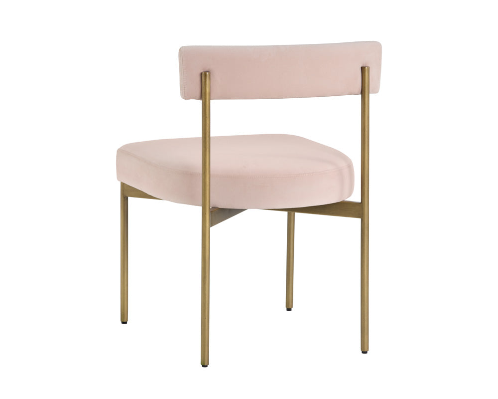 Exude mid-century style with this open back dining chair. Stocked in arena cement, velvet blush, velvet slate, arena navy and polo stone (stained and moisture repellent) with a steel frame in 2 different colours.