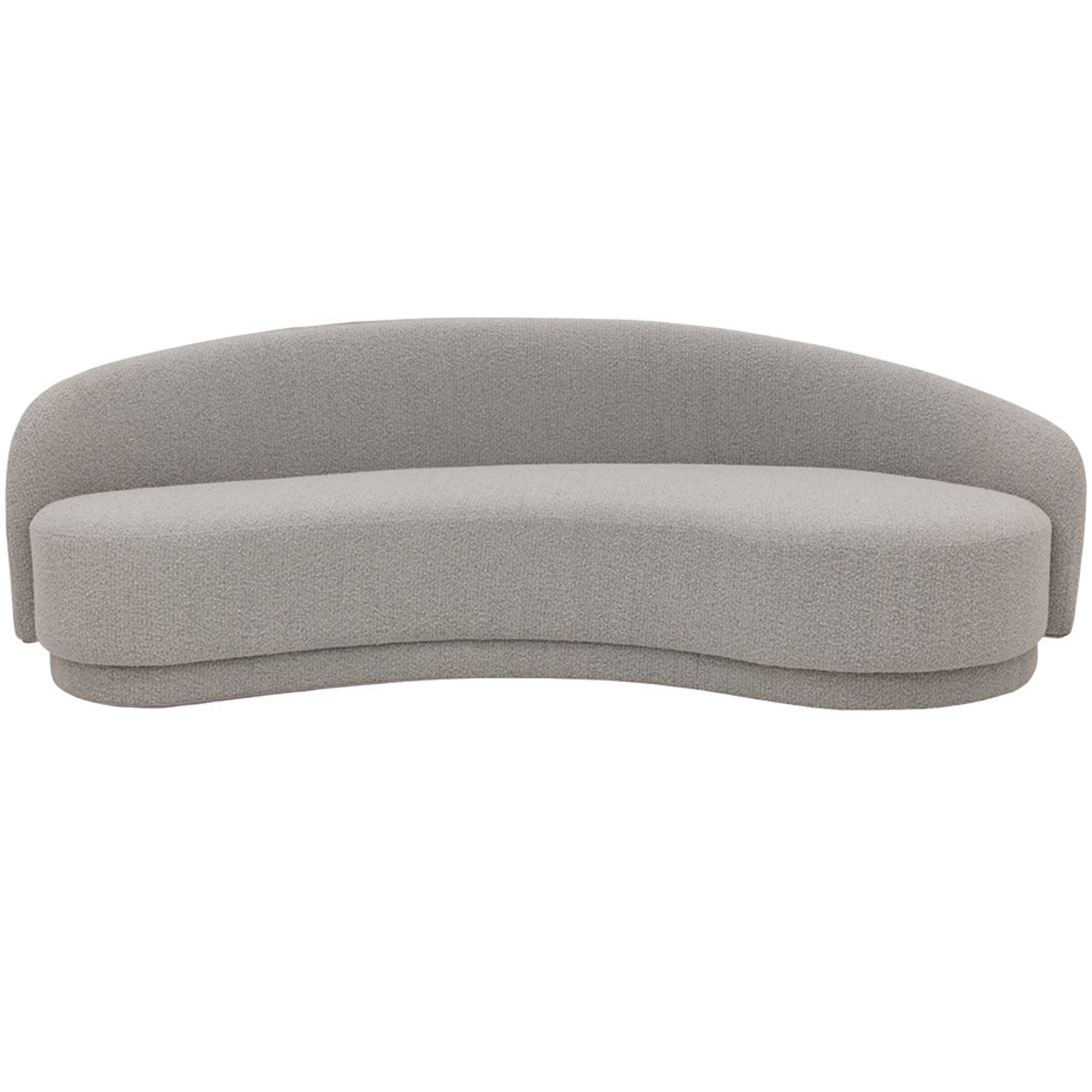 Add a contemporary flair with this bold sofa. Features a curved frame in capuccino fabric. Eye-catching from all angles.