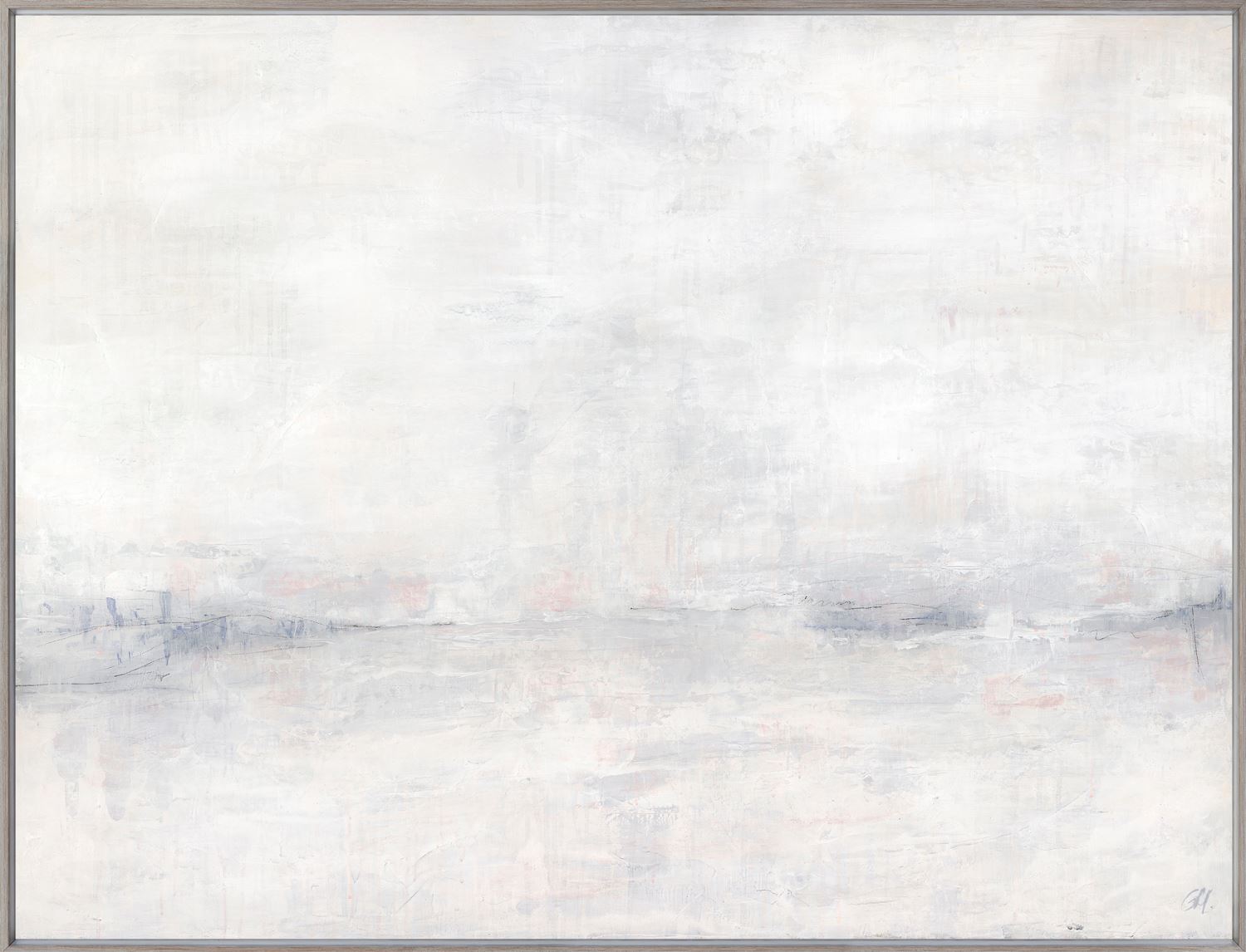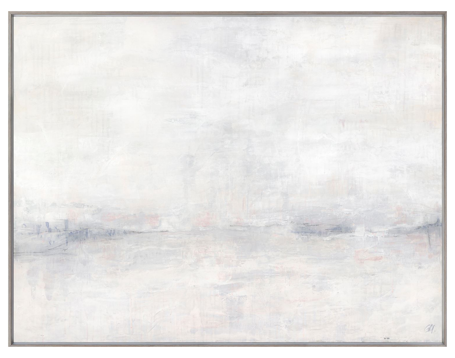 Regular price $1,489.00Echoes of a pastel seascape are expressed in this multi-layered, mixed media piece. Soft grays, blush and blues create a quiet and soothing expression with pencil detailing. This piece is available under glass with white washed profile with silver inner angle or on canvas unframed or in medium or large sizes in two different frames.#A is a highly polished, embossed steel wrap on ivory wash base. #B has a white washed angled profile with silver inner face.