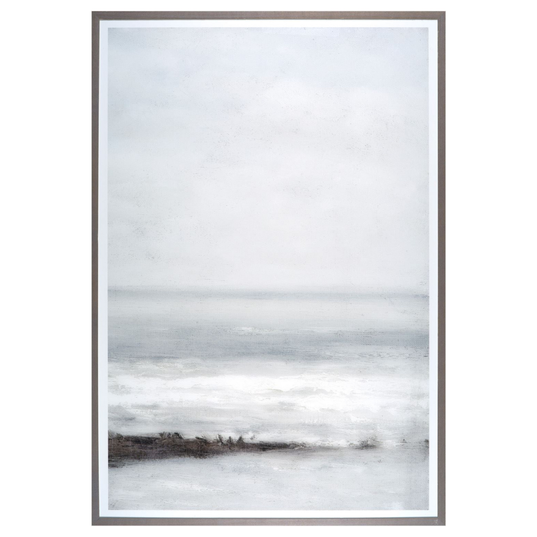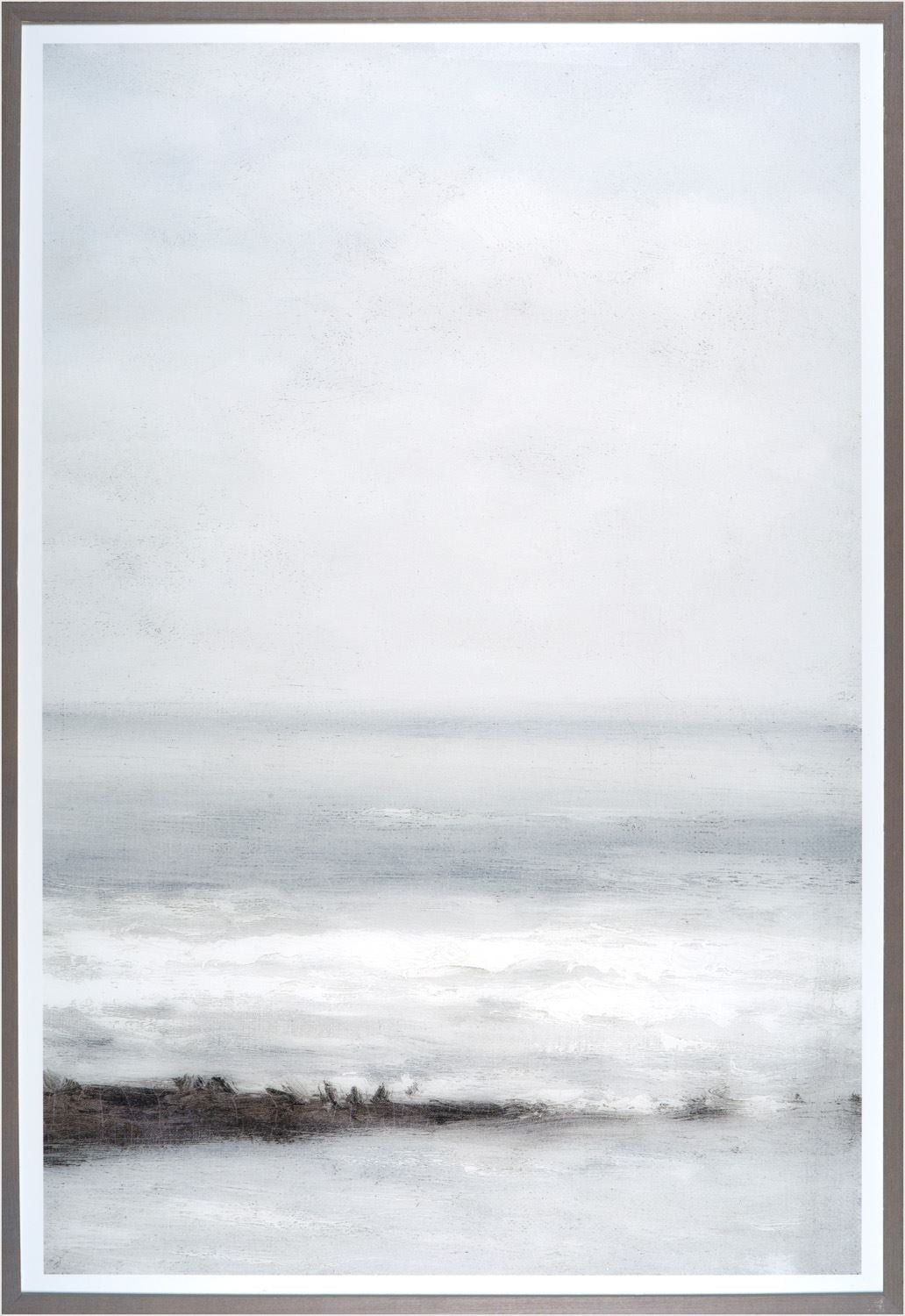 Be transported in this modern take of a 19th century Dutch painting blending sky and water for a truly ethereal experience. Soft greys, taupes and washed out sea foam greens have you straining to hear the sounds of waves and feel the mist on your face.