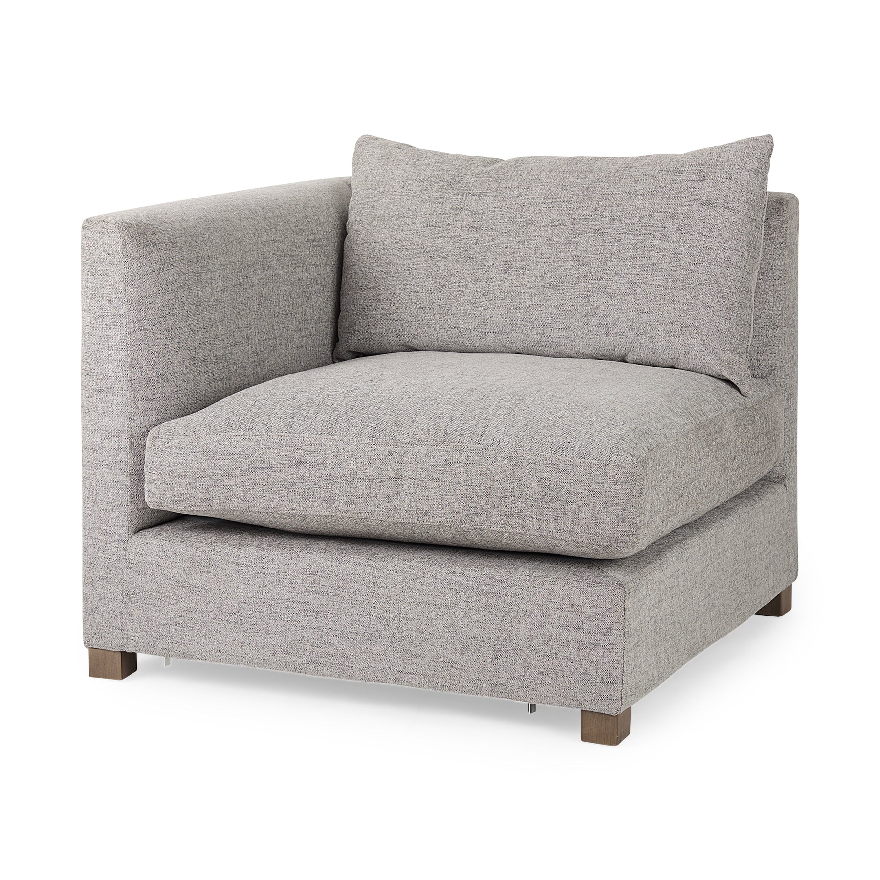 Designed for ultimate flexibility and comfort, our VIENNA sofa range consists of six interchangeable elements that can be coordinated into endless configurations to suit all spaces and requirements. High-quality fiber and feather filling offer a soft, but firm sit, while Dacron wrapping gives a full, structured look. Weighty back cushions with siliconized fiber and duck down provide sink-in comfort against a deep, supportive frame, perfect for propping pillows and slouching in. Each piece is neatly finished with solid Beech wood feet and locked in place by robust alligator clips. Available in a selection of neutral fabrics, this modern yet timeless range is all about easy living done well. With deep, but sensible proportions, and clean lines, it blends effortlessly into any setting.